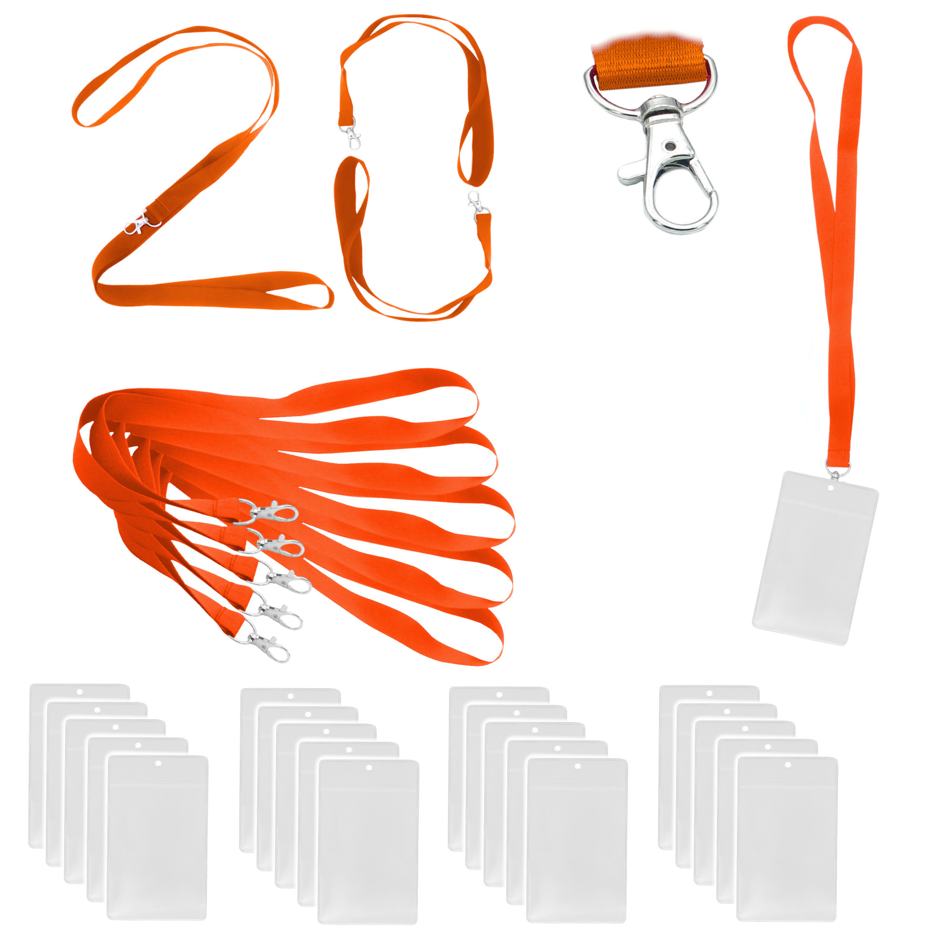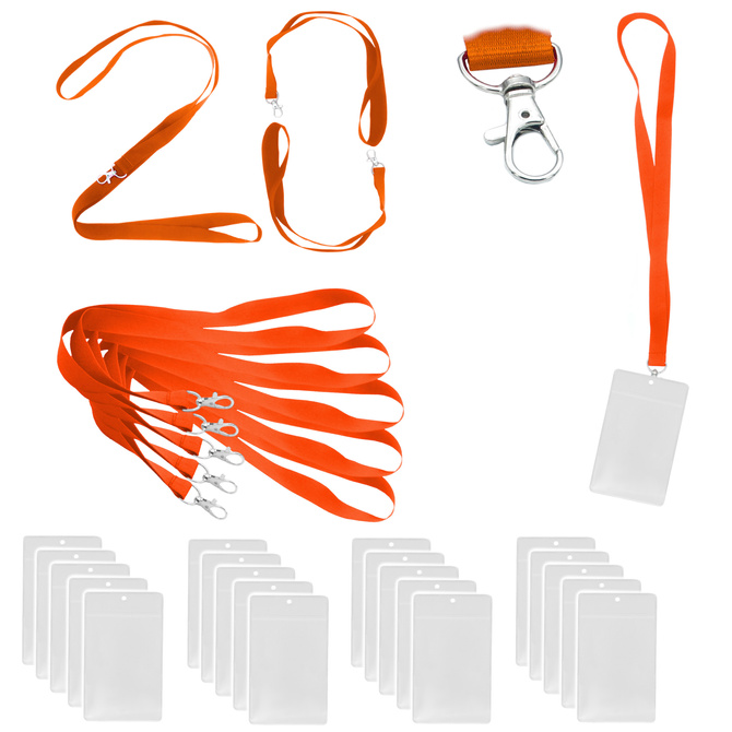 20 Zestawów: identyfikator pionowy holder targowy A7 81x110mm + smycz z karabińczykiem 90x2cm