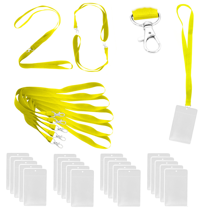 20 Zestawów: identyfikator pionowy holder targowy A7 81x110mm + smycz z karabińczykiem 90x2cm