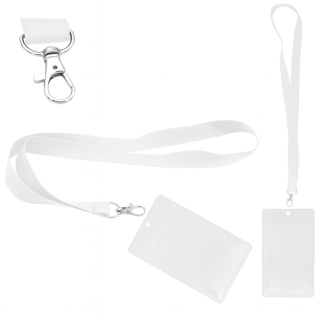 - Smycz zakończona metalowym karabińczykiem, co pozwala na przypięcie dowolnego identyfikatora