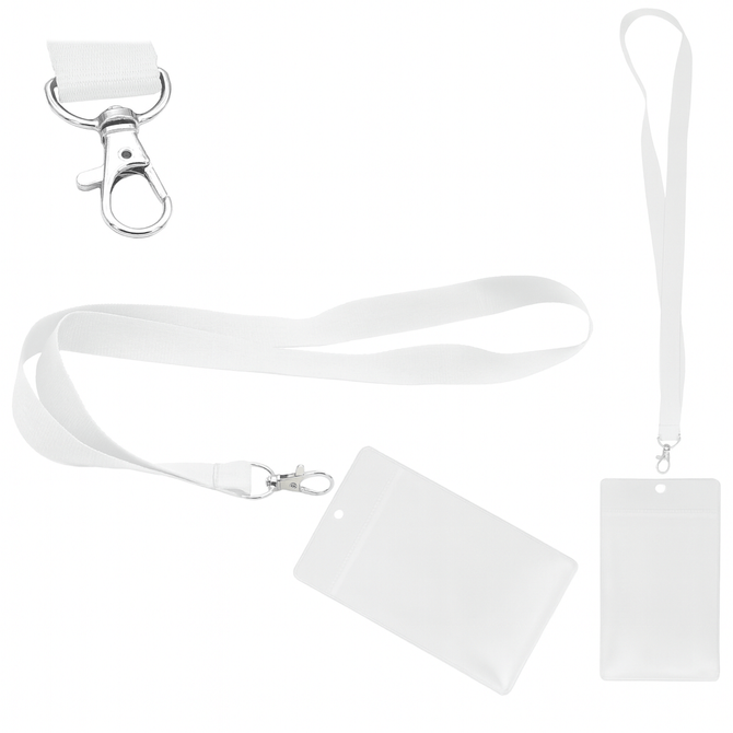 Zestaw identyfikator pionowy holder targowy A7 81x110mm + smycz z karabińczykiem 90x2cm
