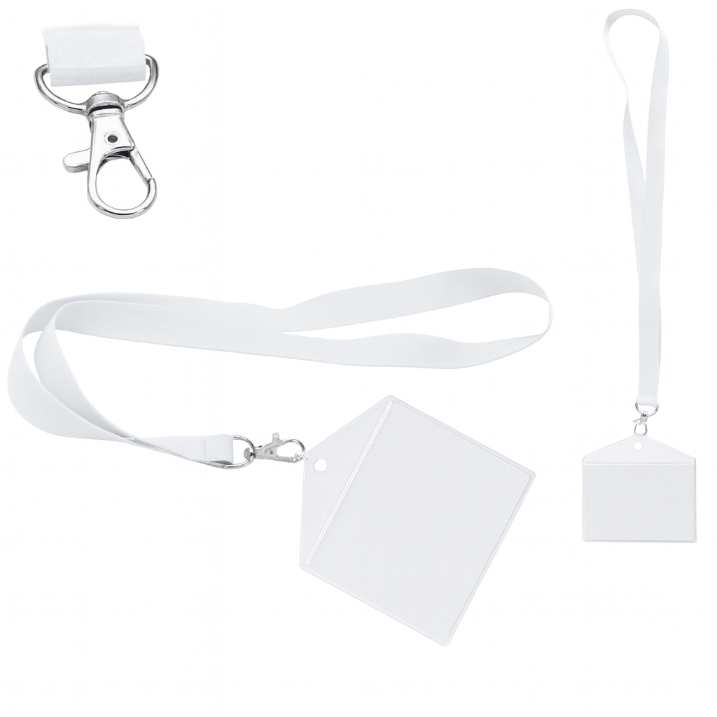 Zestaw: identyfikator poziomy holder targowy 100x65mm + smycz z karabińczykiem 90x2cm