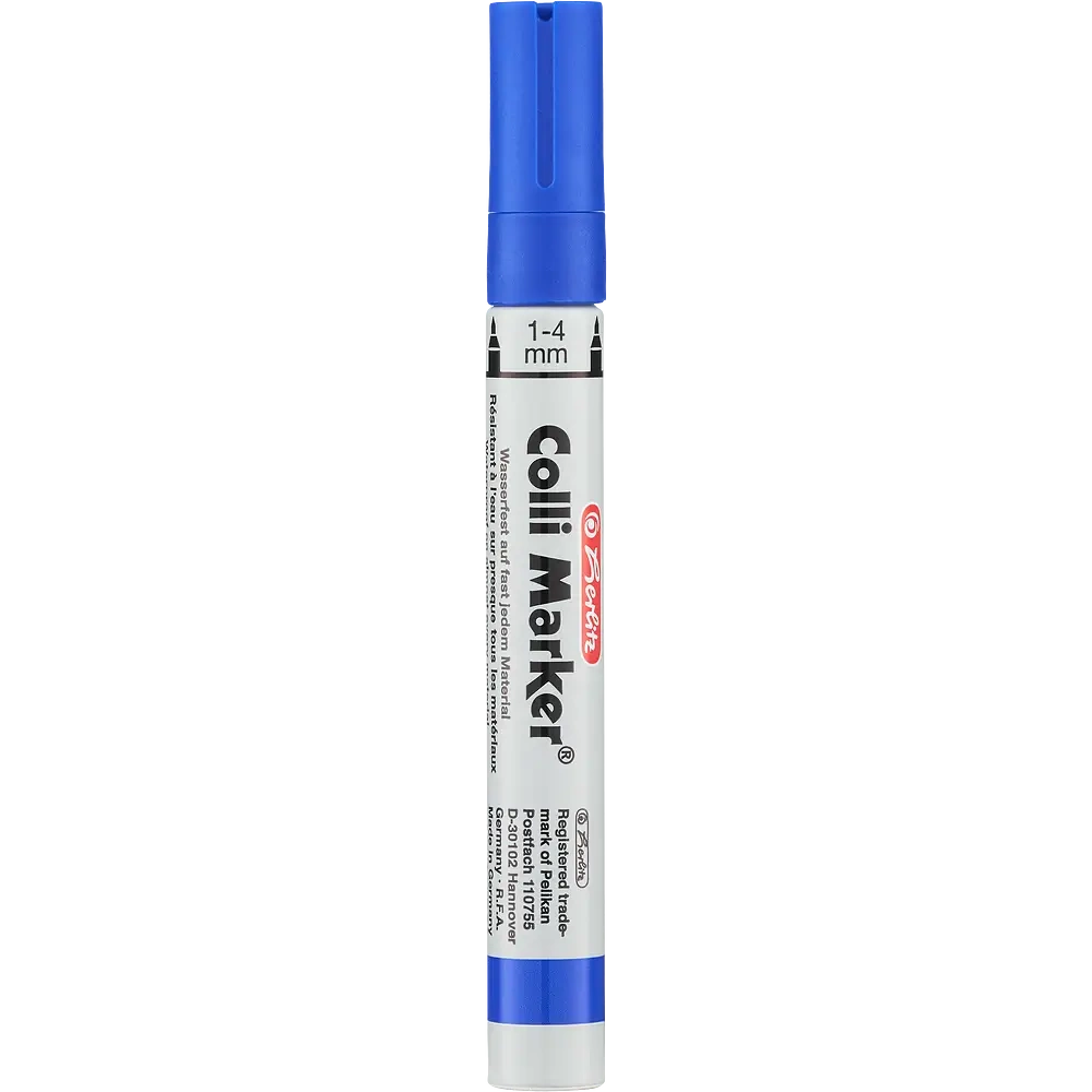 Herlitz Colli-Marker w kolorze niebieskim to połączenie trwałości, precyzji i wygody użytkowania – niezawodne narzędzie do oznaczania, pisania i podpisywania w każdych warunkach.