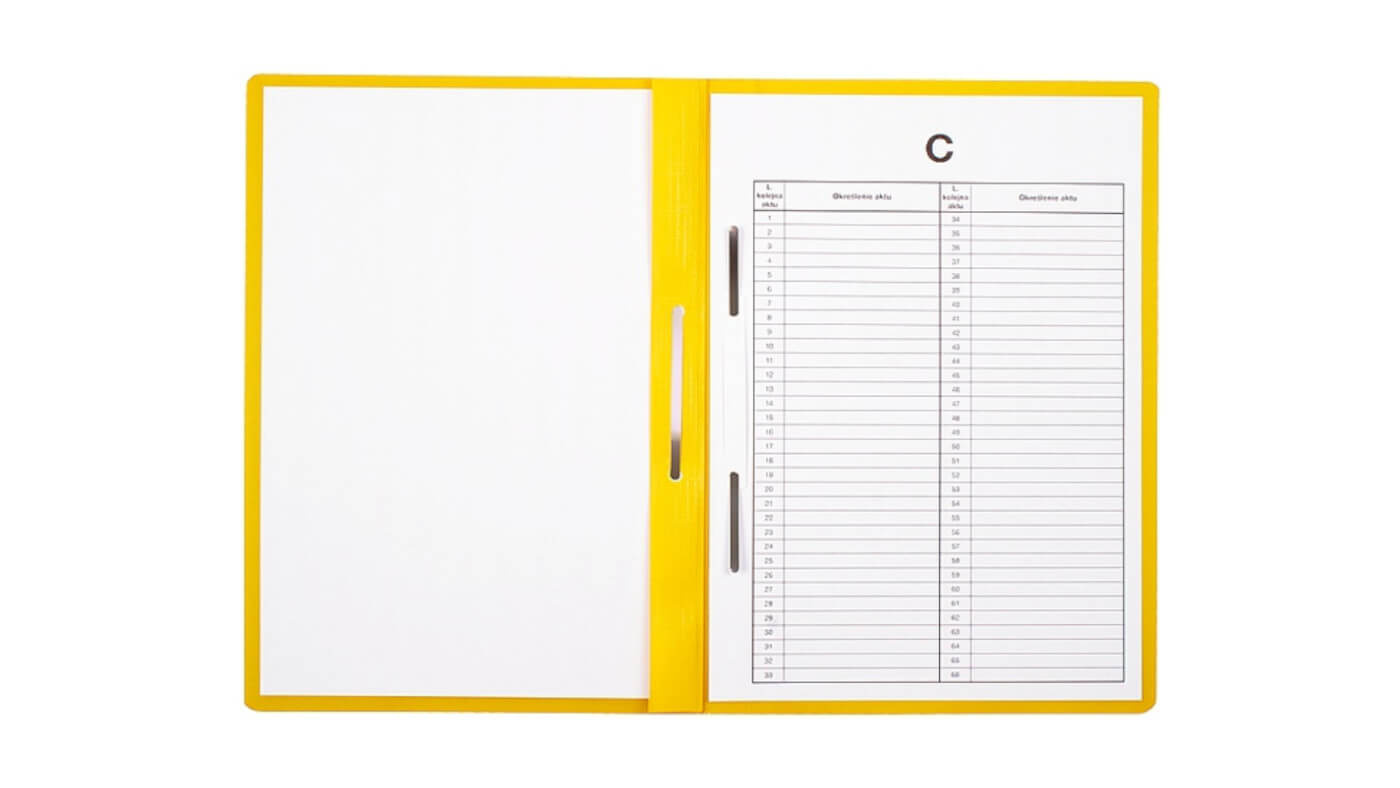- Wyposażony w uniwersalne, jednostronnie zadrukowane przekładki A, B, C i D (możliwość dokupienia dodatkowego wkładu)