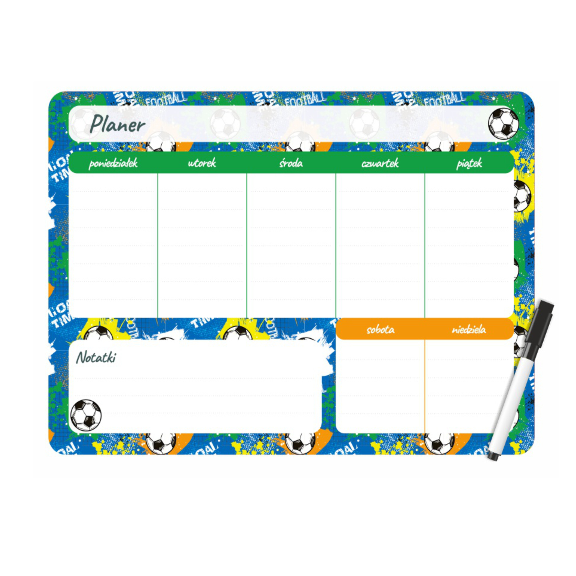 ⚽ Magnetyczny planer tygodniowy 25x35 cm – wzór FOOTBALL