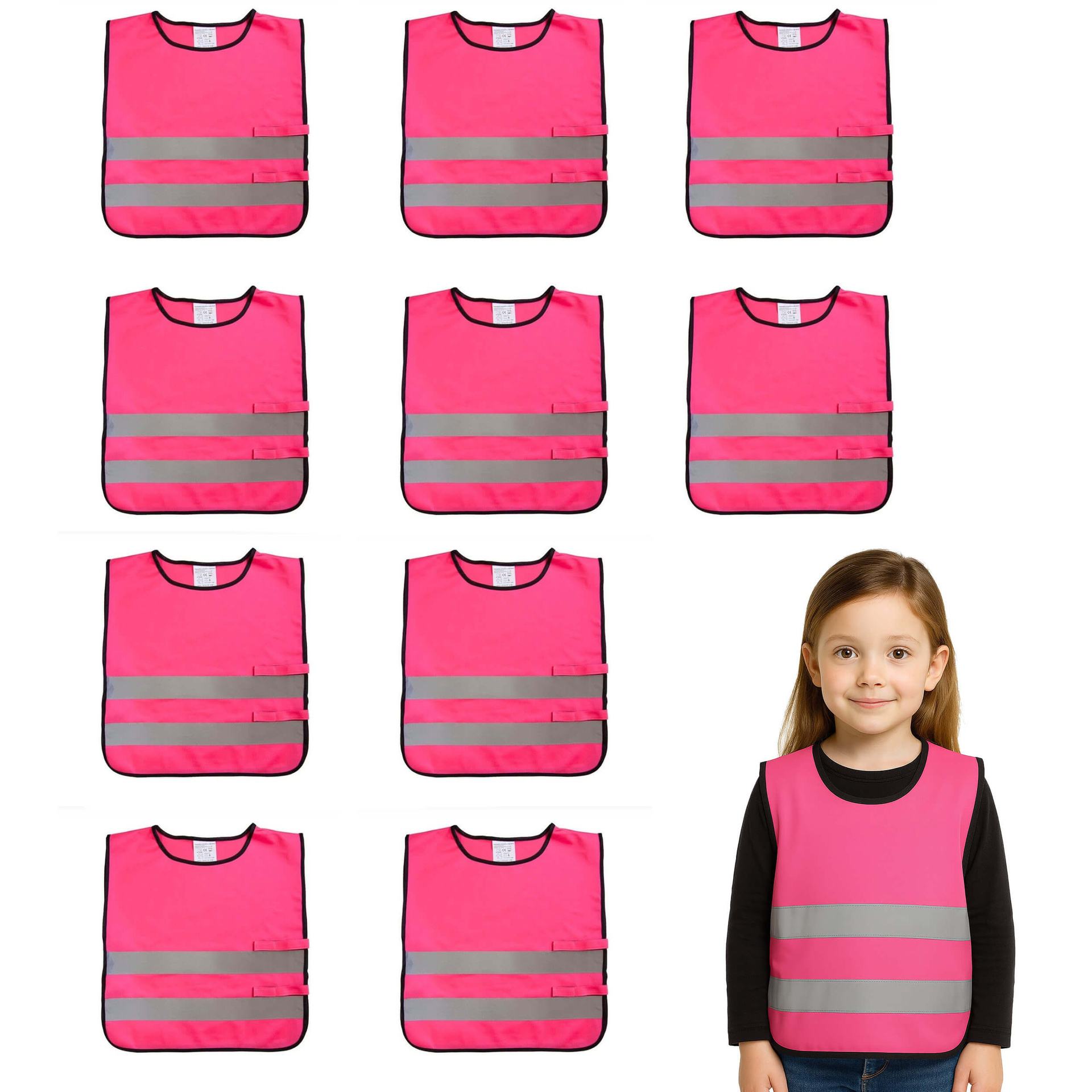 🦺 Kamizelka odblaskowa dla dzieci 10 sztuk– bezpieczeństwo i widoczność na drodze