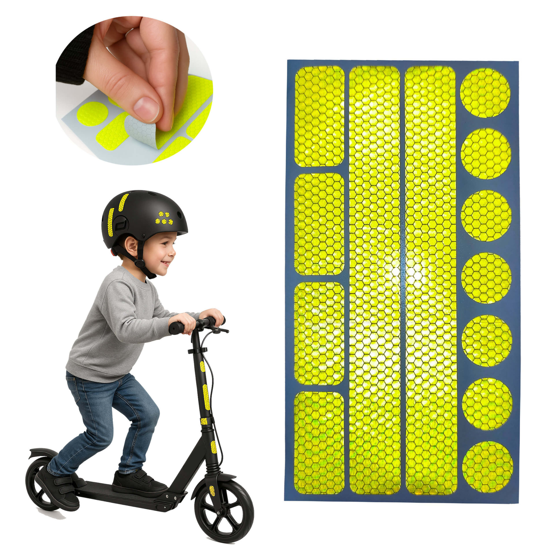 Żółte naklejki odblaskowe to skuteczny i prosty sposób na poprawę widoczności po zmroku. Idealne do zastosowania na rowerze, hulajnodze, wózku, kasku czy tornistrze – zwiększają bezpieczeństwo w każdych warunkach oświetleniowych.