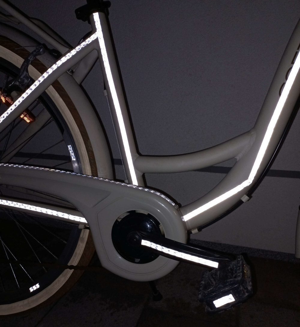 • Samoprzylepna taśma odblaskowa, doskonale sprawdzi się do zwiększenia Twojej widoczności na ulicy po zmroku