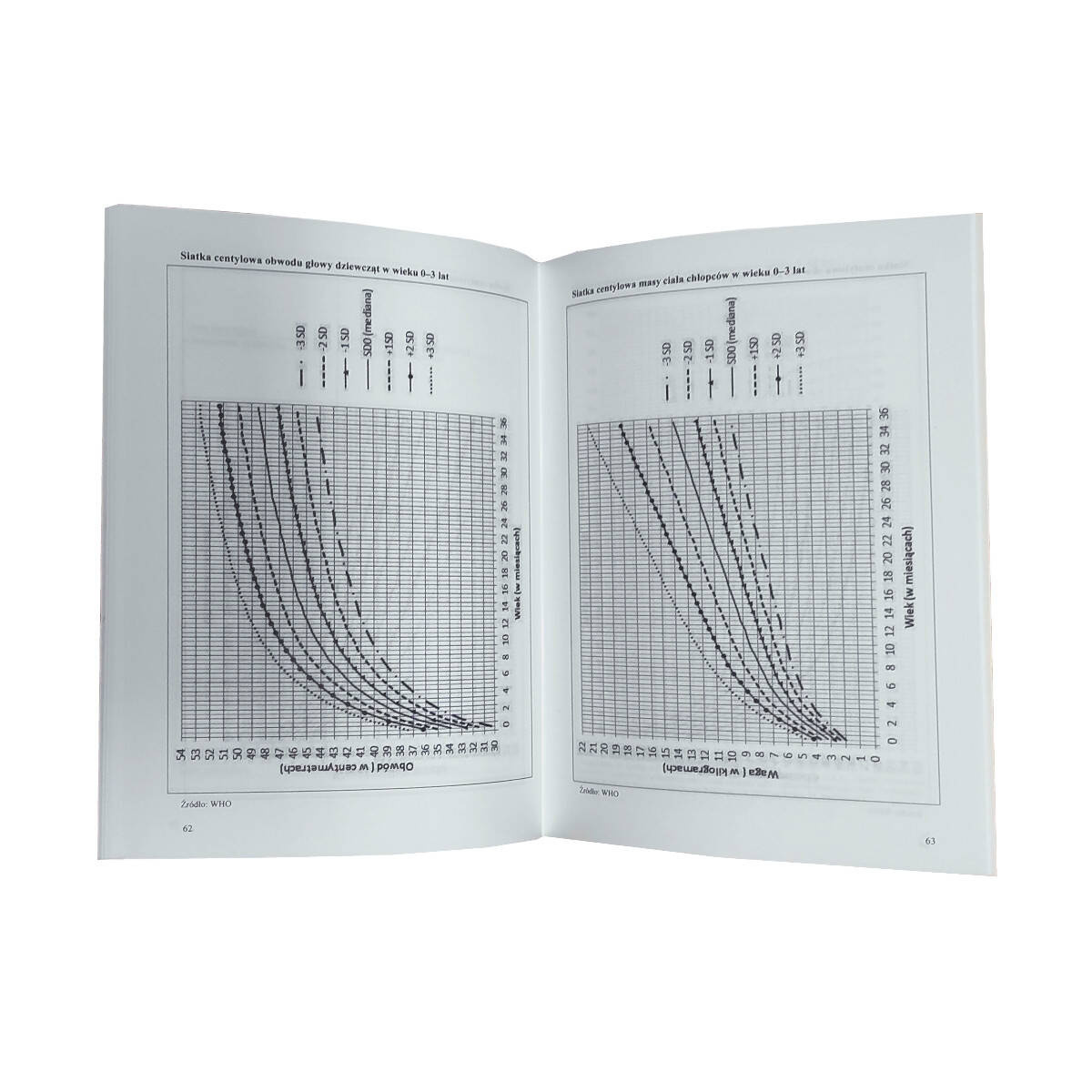 - Miękka okładka w oprawie zeszytowej, zawiera 76 stron: Książeczka Zdrowia Dziecka (66 stron) i Książeczkę Szczepień (10 stron)