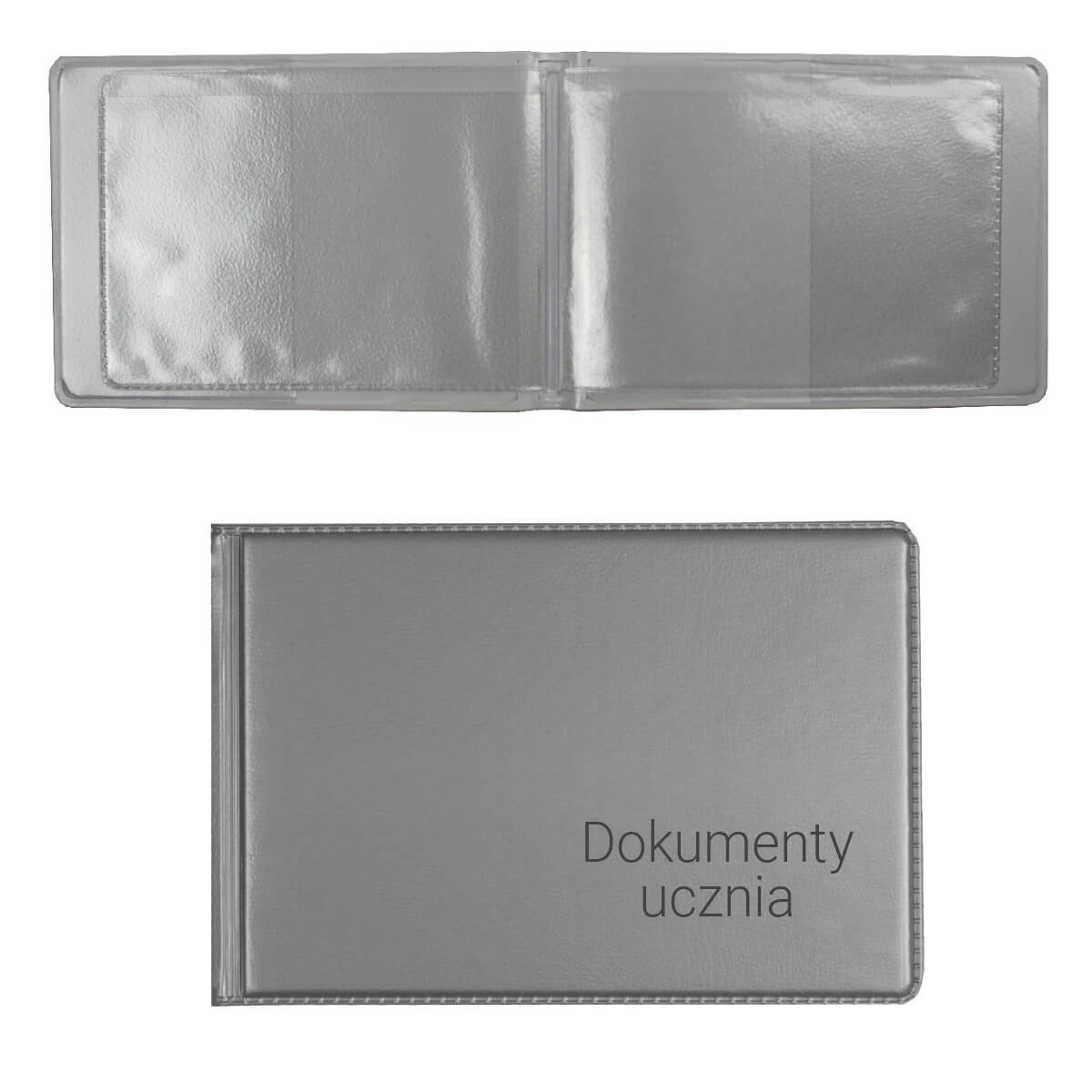 - Wykonana z folii PVC usztywnionej wewnątrz tekturą, posiada na przedniej okładce nadruk Dokumenty ucznia