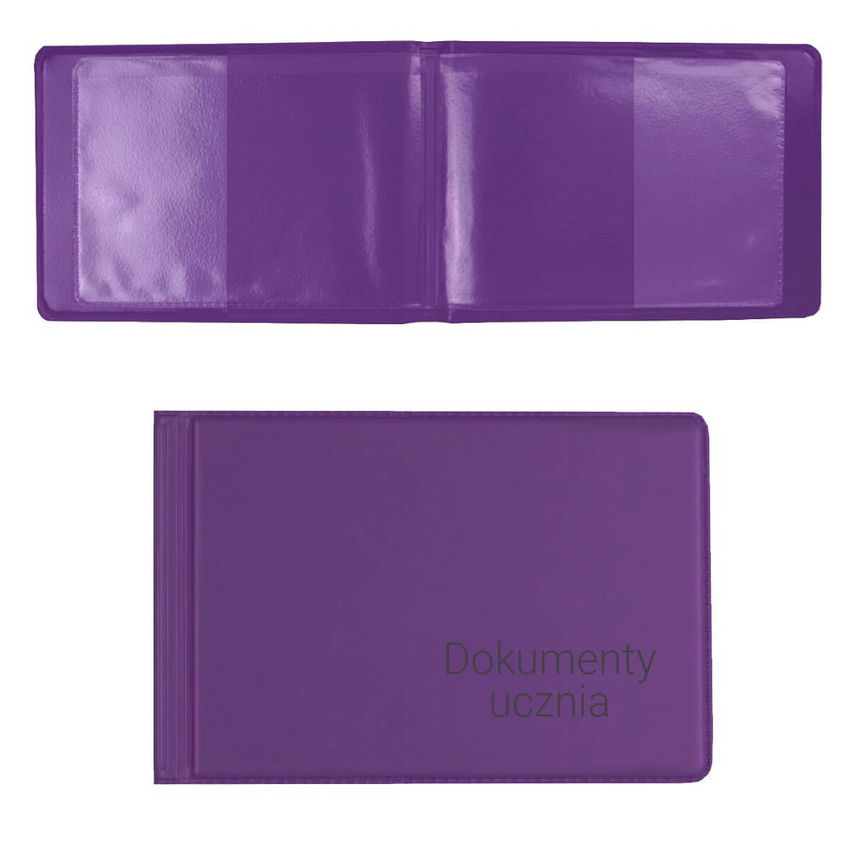 - Wykonana z folii PVC usztywnionej wewnątrz tekturą, posiada na przedniej okładce nadruk Dokumenty ucznia