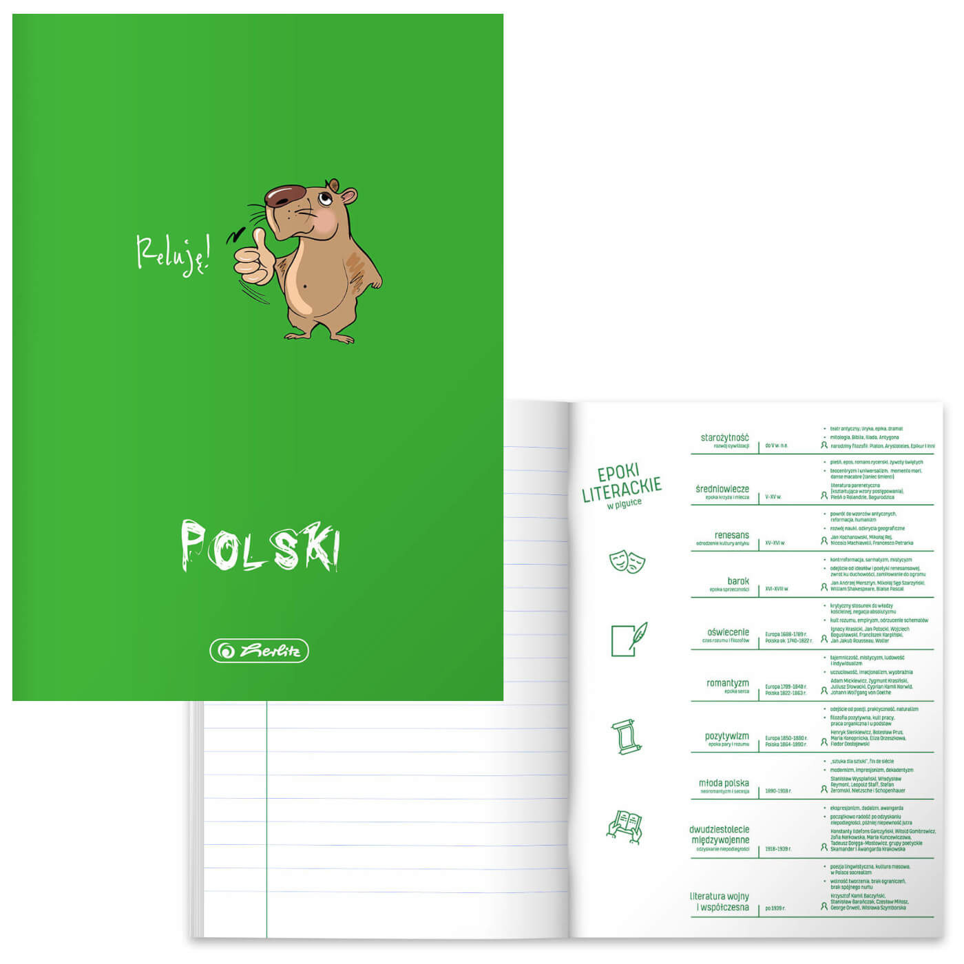 - Okładki z piktogramami oznaczającymi dany przedmiot, dzięki którym łatwiej jest znaleźć w plecaku dany zeszyt