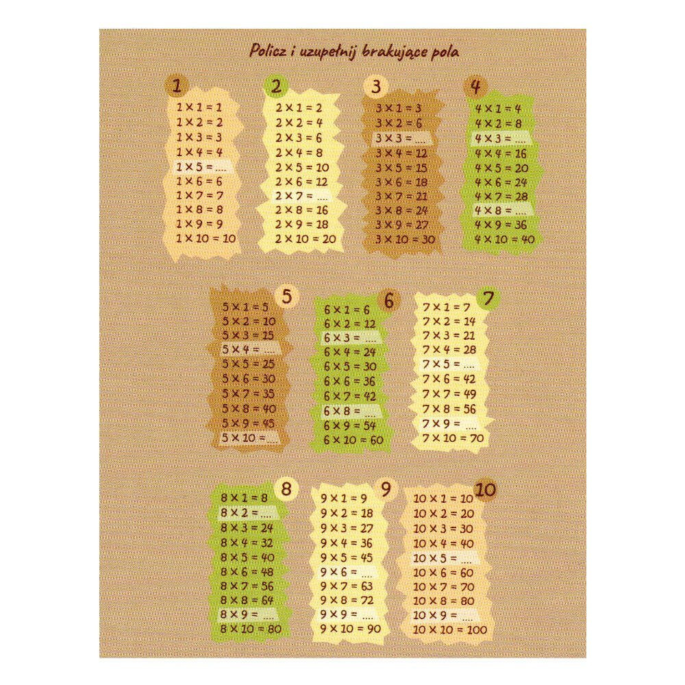 - Na okładce z tyłu tabliczka mnożenia z polami do samodzielnego uzupełnienia (zdjęcie w galerii)