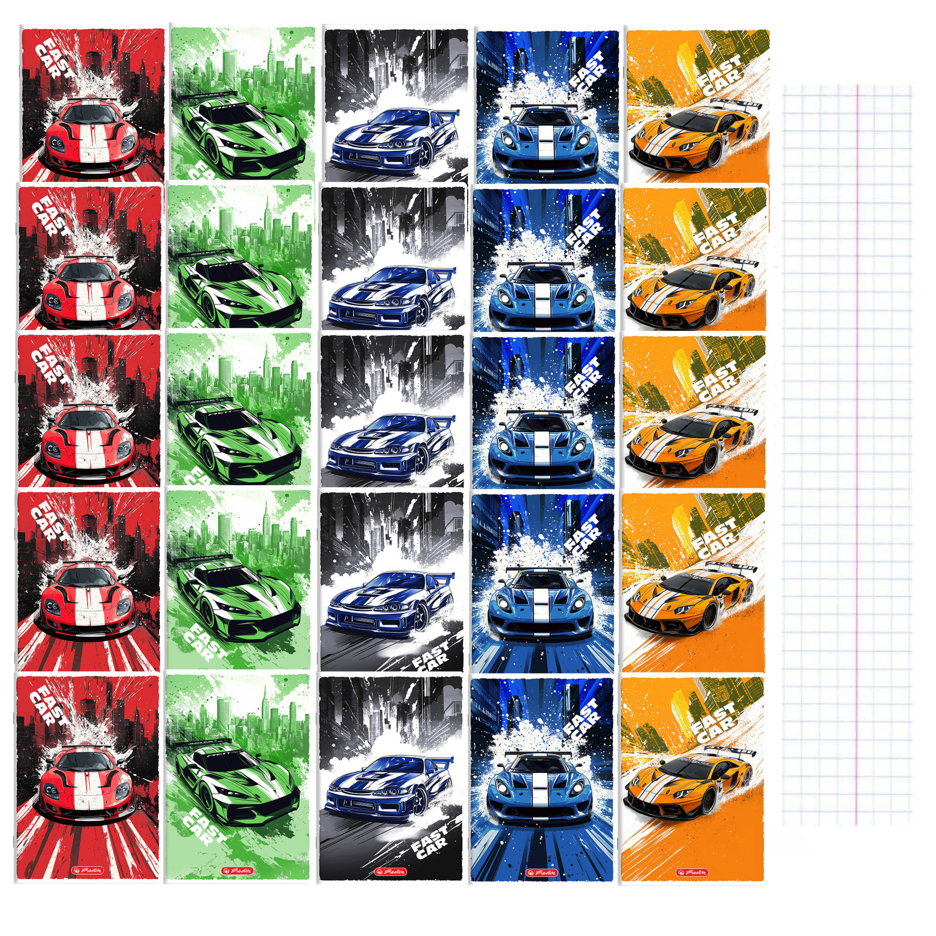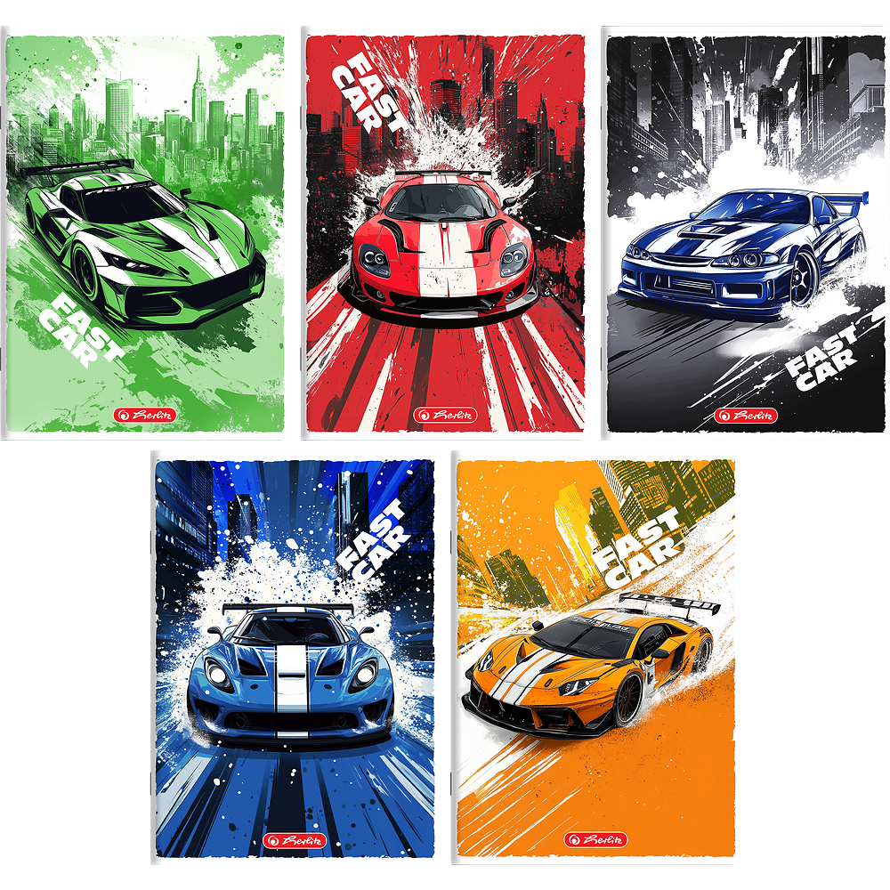 📝 Zeszyt A5 Herlitz Fast Car – 16 kartek, kratka, 20 sztuk
