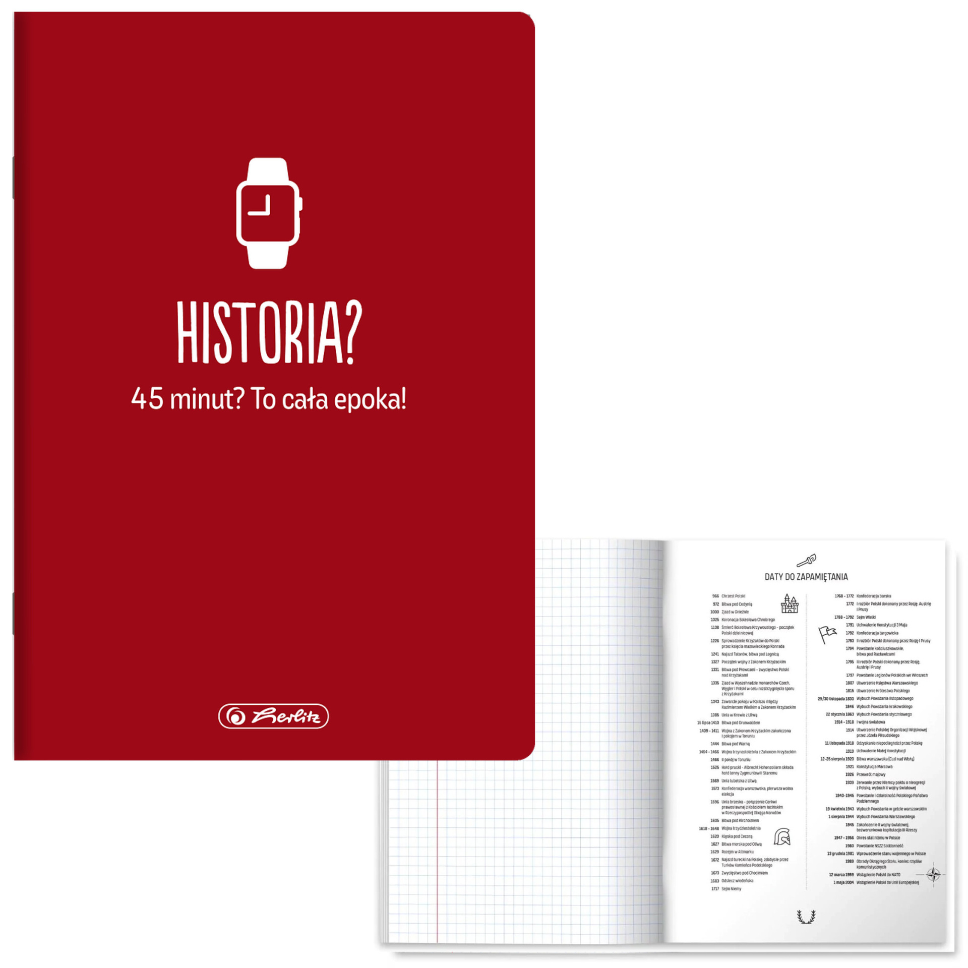 - Zeszyt tematyczny, dedykowany dla konkretnego przedmiotu: historii, format A5 (150mm x 210mm).