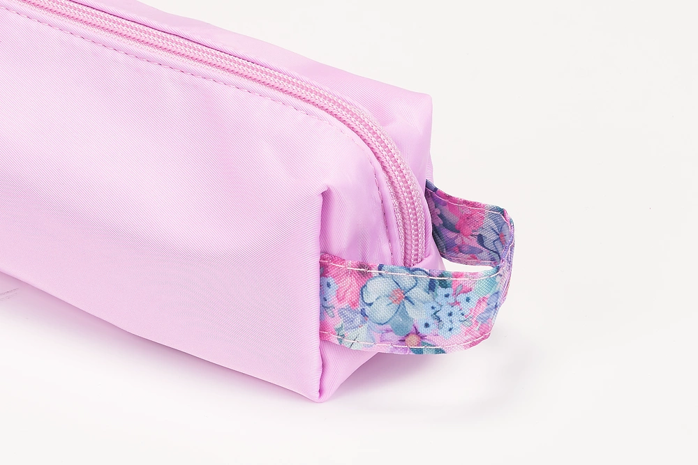 Piórnik Flowers w różowym odcieniu to połączenie subtelnego stylu z praktycznym zastosowaniem. Zaskakuje uroczą, kwiatową podszewką i solidnym wykonaniem z wodoodpornego materiału. Świetnie sprawdzi się jako piórnik szkolny lub delikatna kosmetyczka do torebki czy plecaka. Satynowa tkanina i pastelowy kolor przywołują na myśl najpiękniejsze wiosenne wspomnienia – to idealny wybór dla każdej miłośniczki stylu i porządku.