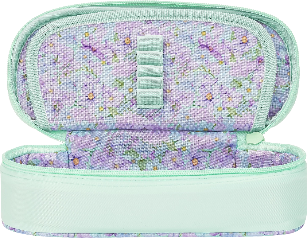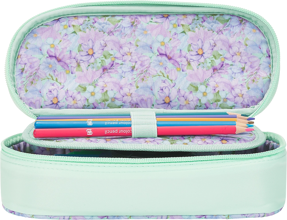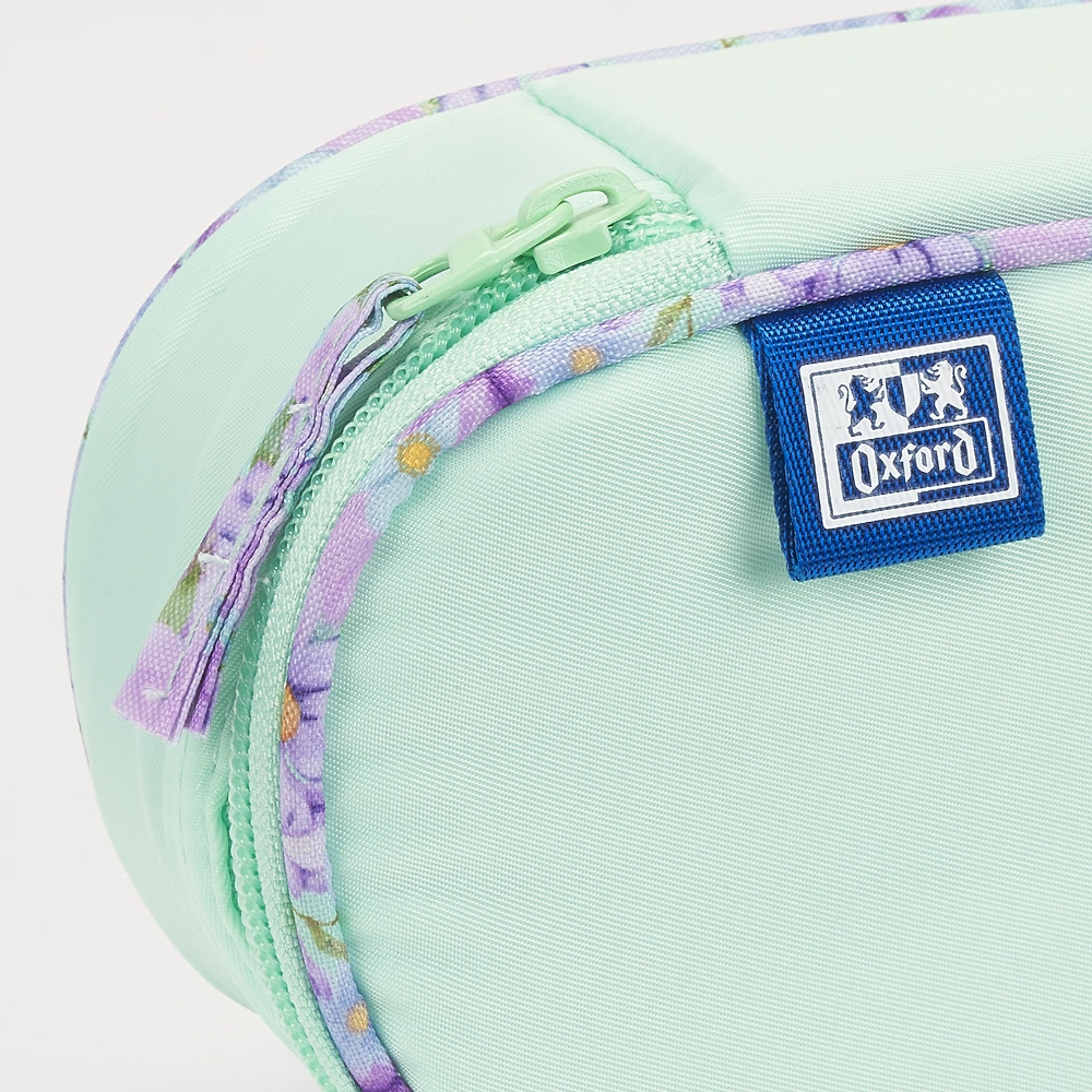 Ten piękny piórnik z kolekcji Oxford Flowers to połączenie elegancji i funkcjonalności – idealny wybór dla uczniów i uczennic, którzy lubią mieć porządek i otaczać się estetycznymi dodatkami. Wyróżnia się subtelnym pastelowo-zielonym kolorem i zachwycającą kwiatową podszewką.