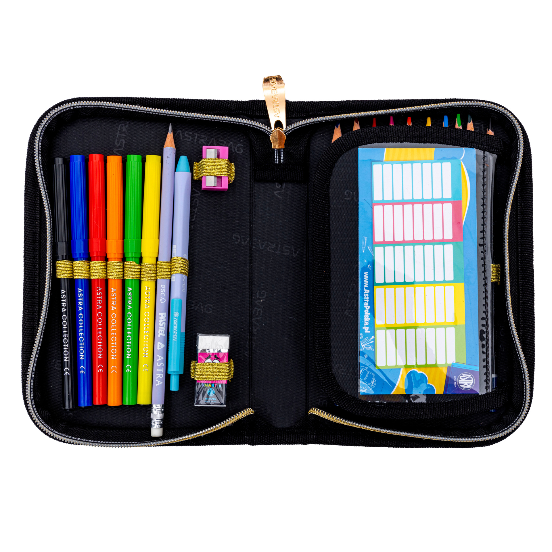 Ten wyjątkowy piórnik z kolekcji Fluffy Kitty zachwyca swoim designem – jest pokryty mięciutkim czarnym futerkiem. Na froncie znajduje się urocza haftowana buźka kotka z odstającymi, futrzanymi uszkami, które dodają mu charakteru. To nie tylko praktyczny organizer szkolny, ale też stylowy dodatek, który pokocha każda dziewczynka!
