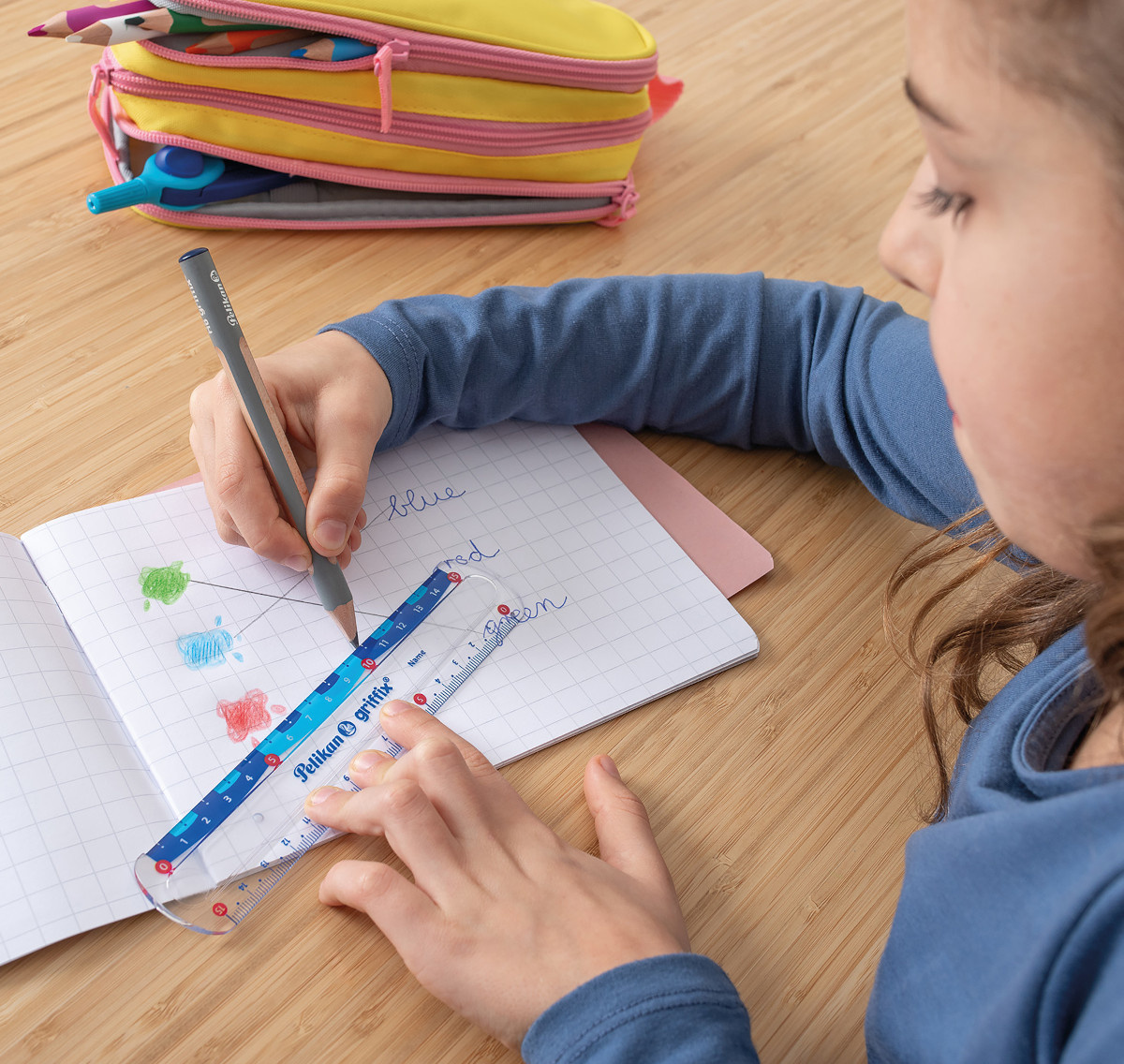 Griffix to wyjątkowy system wspierający naukę pisania, który został opracowany z ekspertami w dziedzinie edukacji i naukowcami z Instytutu Fraunhofera. System ten jest oparty na czterech kolejnych przyborach do pisania (kredka świecowa, ołówek, pióro kulkowe, pióro wieczne). Choć te przybory różnią się od siebie, strefa chwytu pozostaje identyczna w każdym z nich. W efekcie nie ma potrzeby 'przestawiać się' czy 'uczyć od nowa'. Dzięki jednolitej strefie uchwytu każdy kolejny 'poziom' staje się tak naturalny jak to tylko możliwe. Ołówek griffix - to drugi etap nauki pisania.