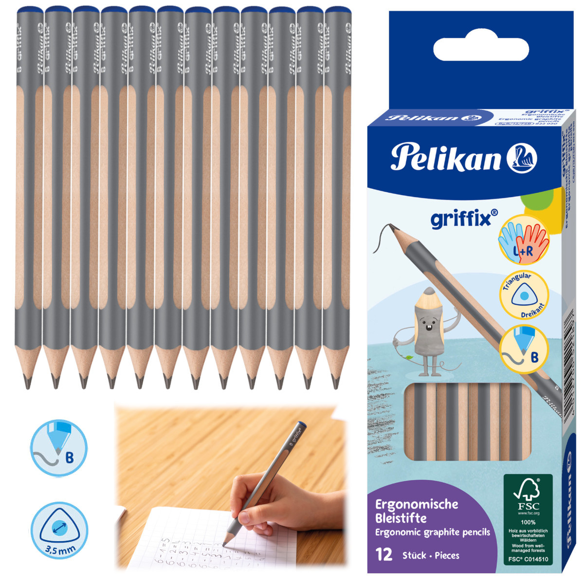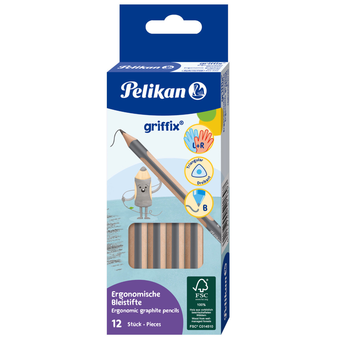 Trójkątny gruby ołówek Pelikan do nauki pisania Griffix Jumbo, zestaw 12 sztuk