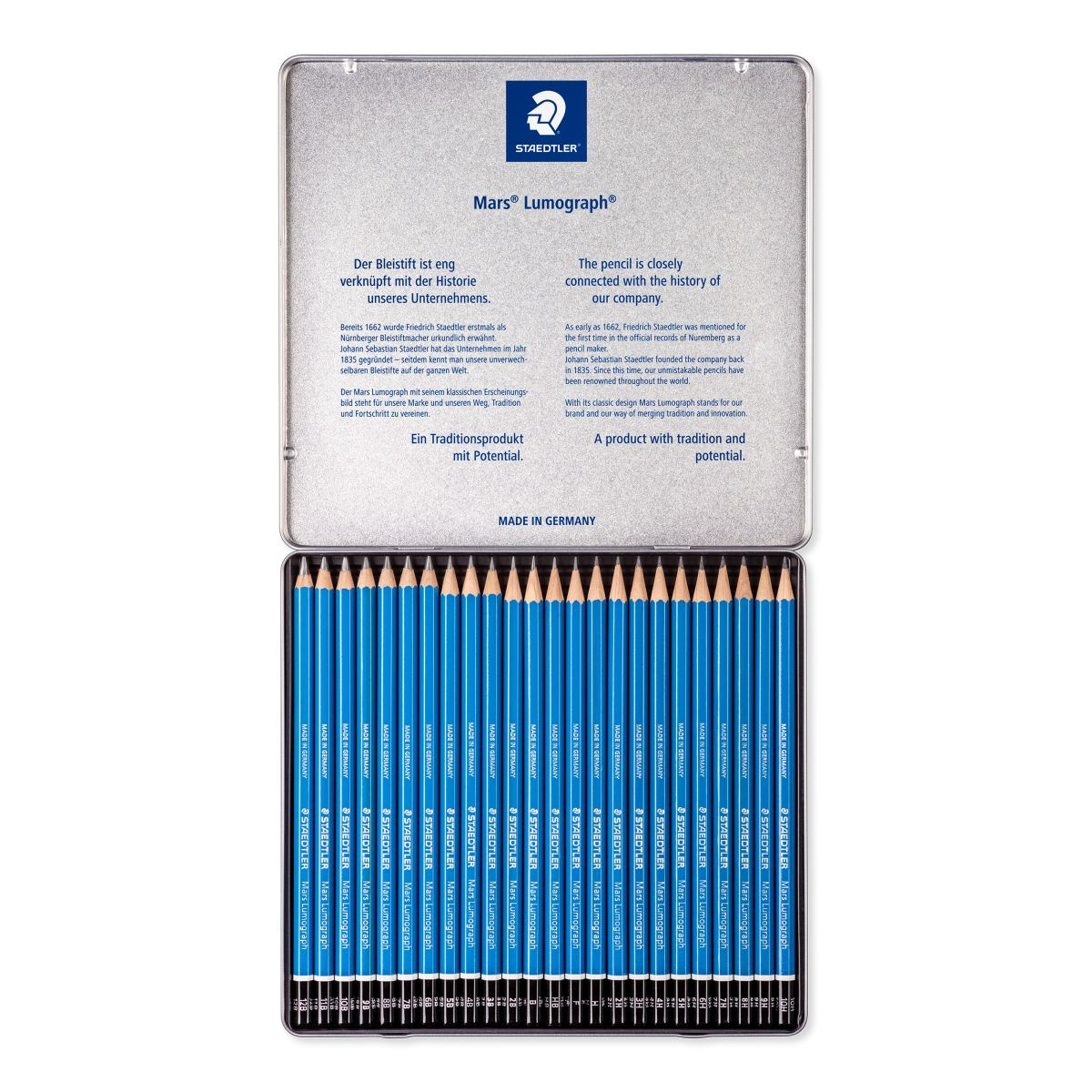 Zestaw ołówek 24szt 12B-10H metalowym pudełku etui Mars Lumograph STAEDTLER