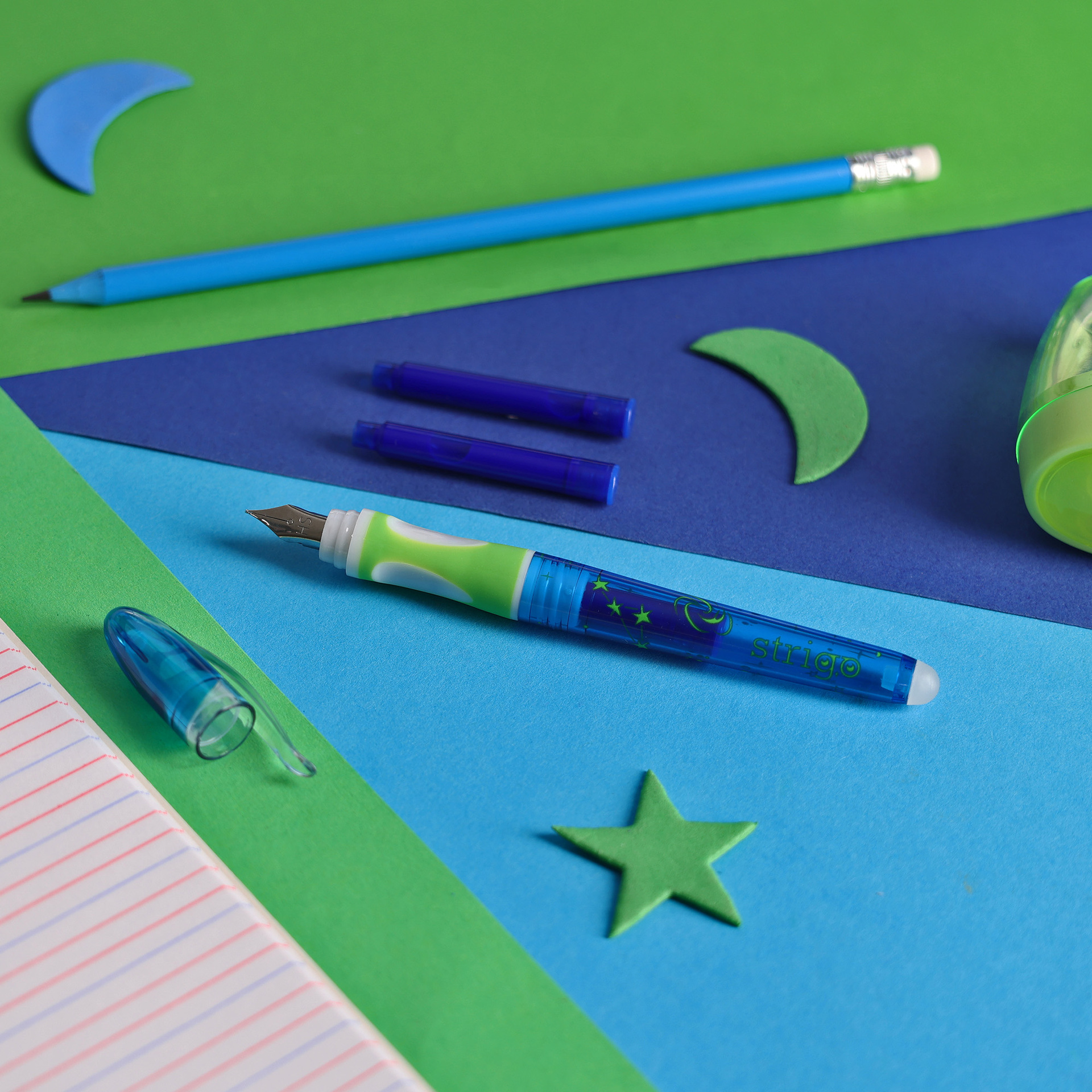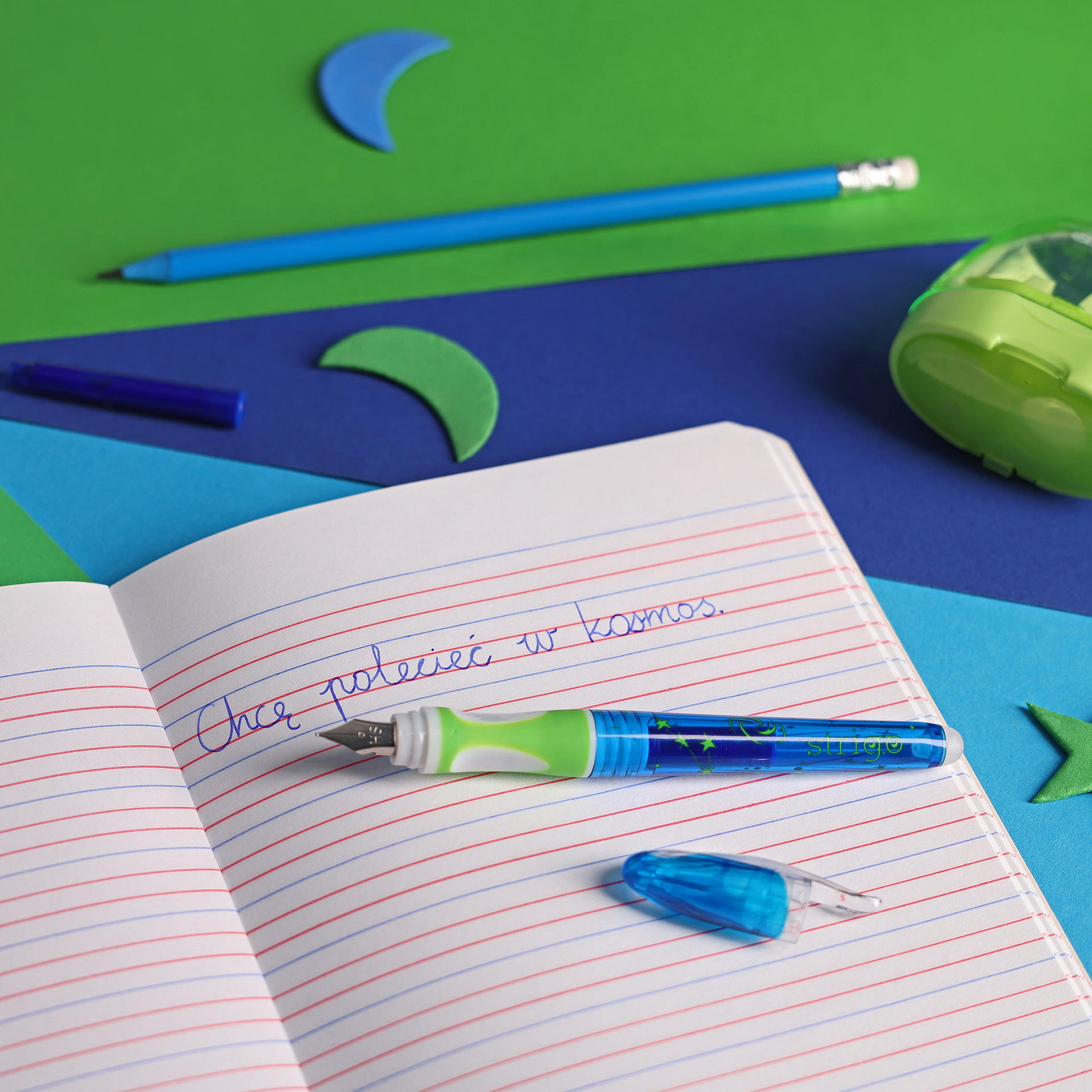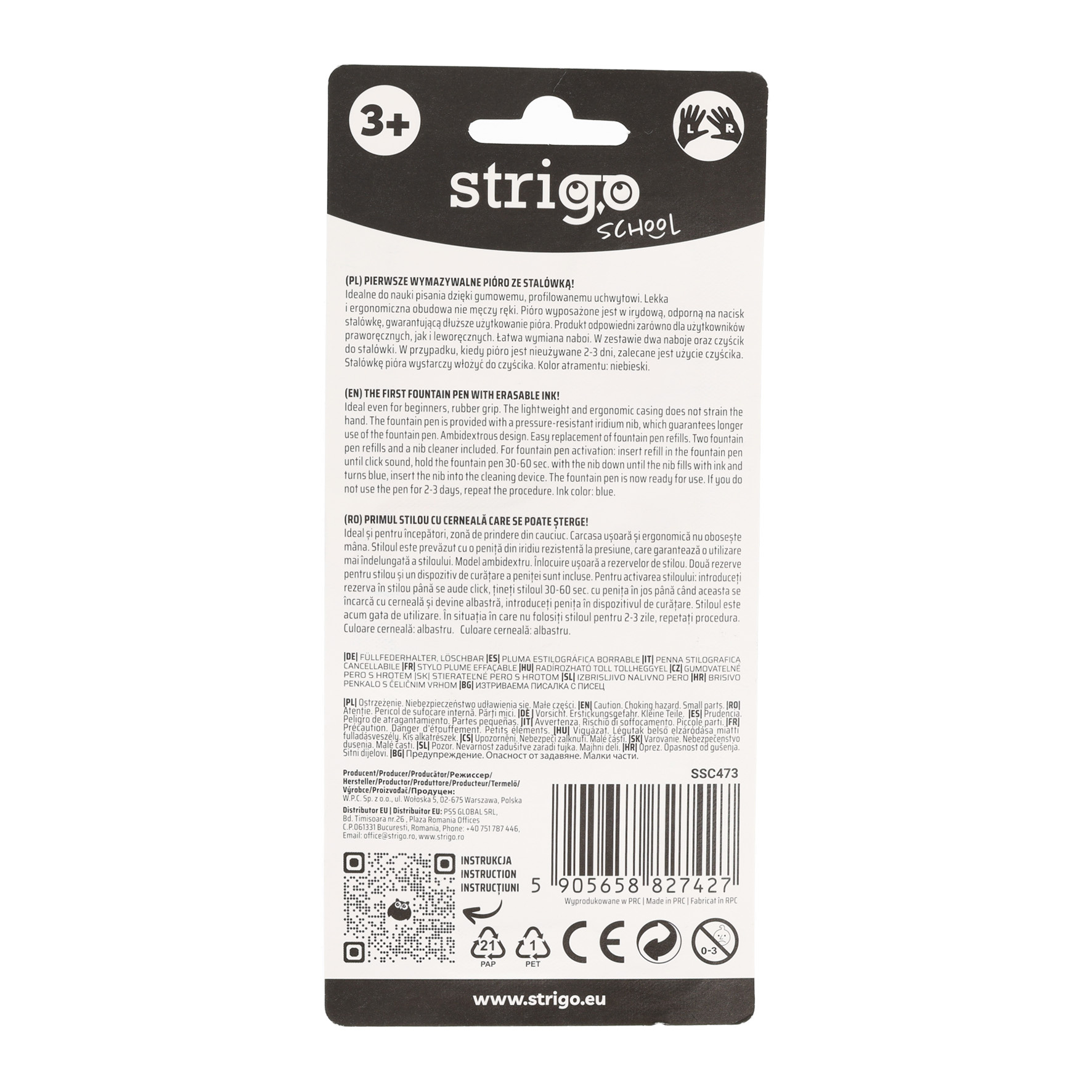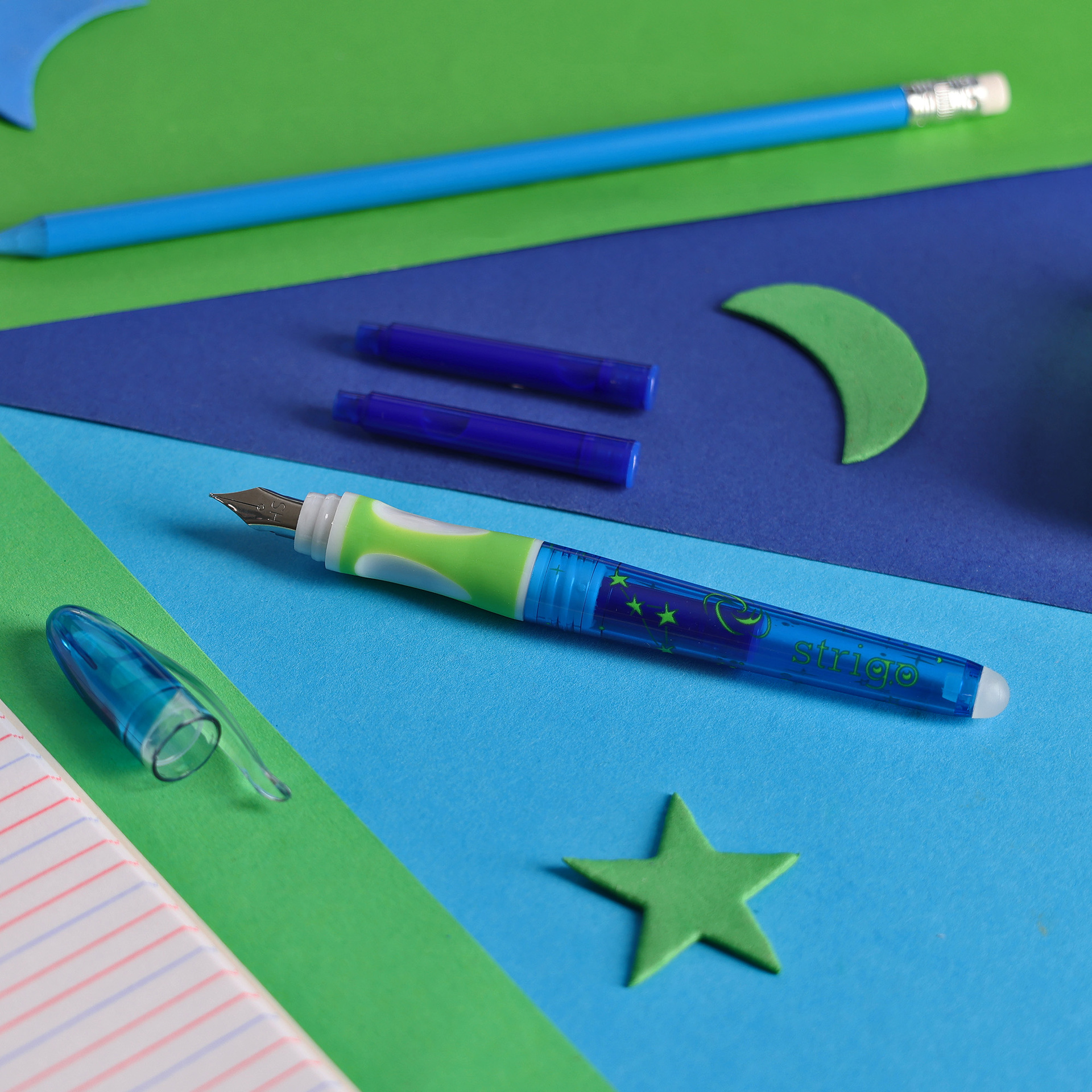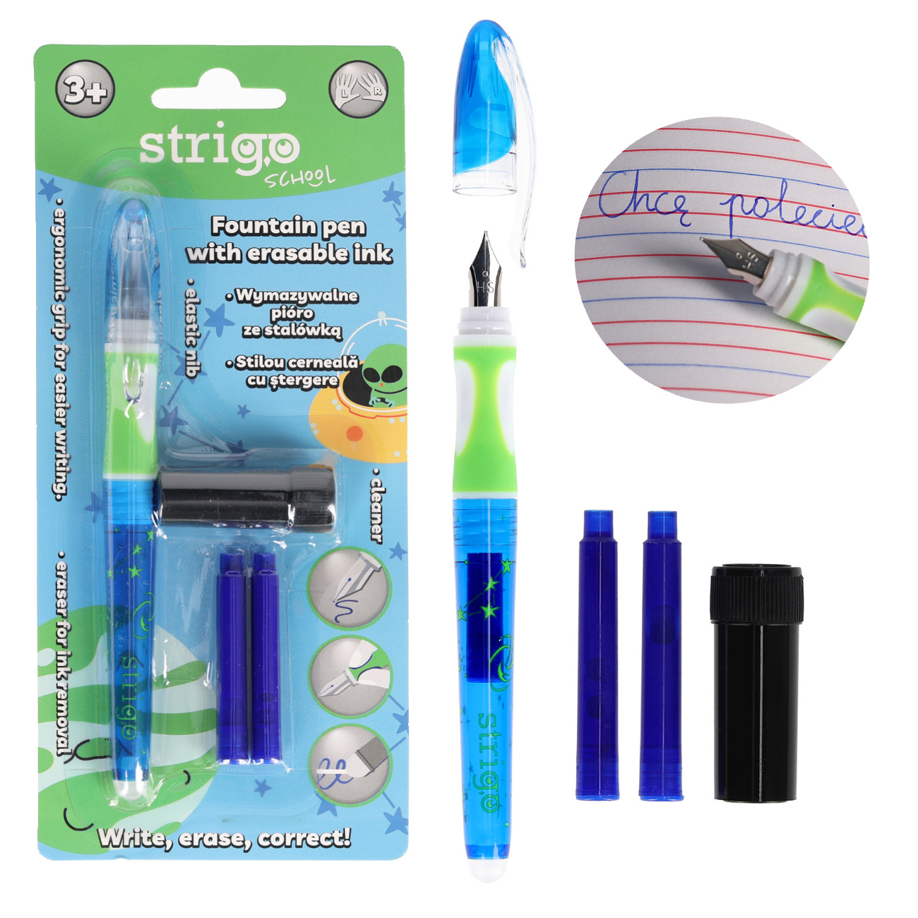 Pióro Strigo wymazywalne, ścieralne dla dzieci do nauki piania w zestawie 2 naboje + czyścik do stalówki