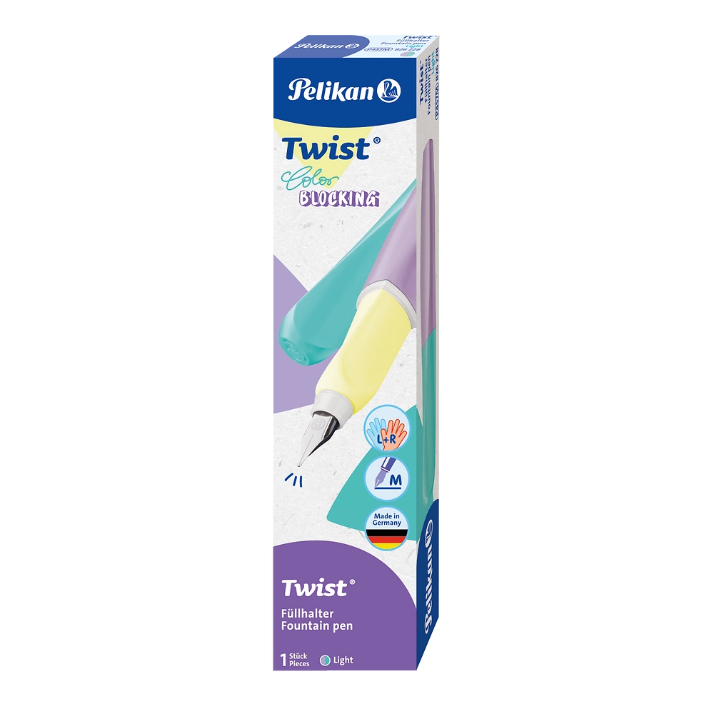 Pelikan Twist to pióro, które od razu przyciąga wzrok swoją dynamiczną, skręconą formą. Łączy nowoczesny design z ergonomiczną konstrukcją – idealne dla dzieci i młodzieży uczących się pisać. Połączenie fioletowego, żółtego i turkusowego koloru sprawia, że jest to idealny wybór dla dzieci i młodzieży, ceniących styl i komfort pisania.