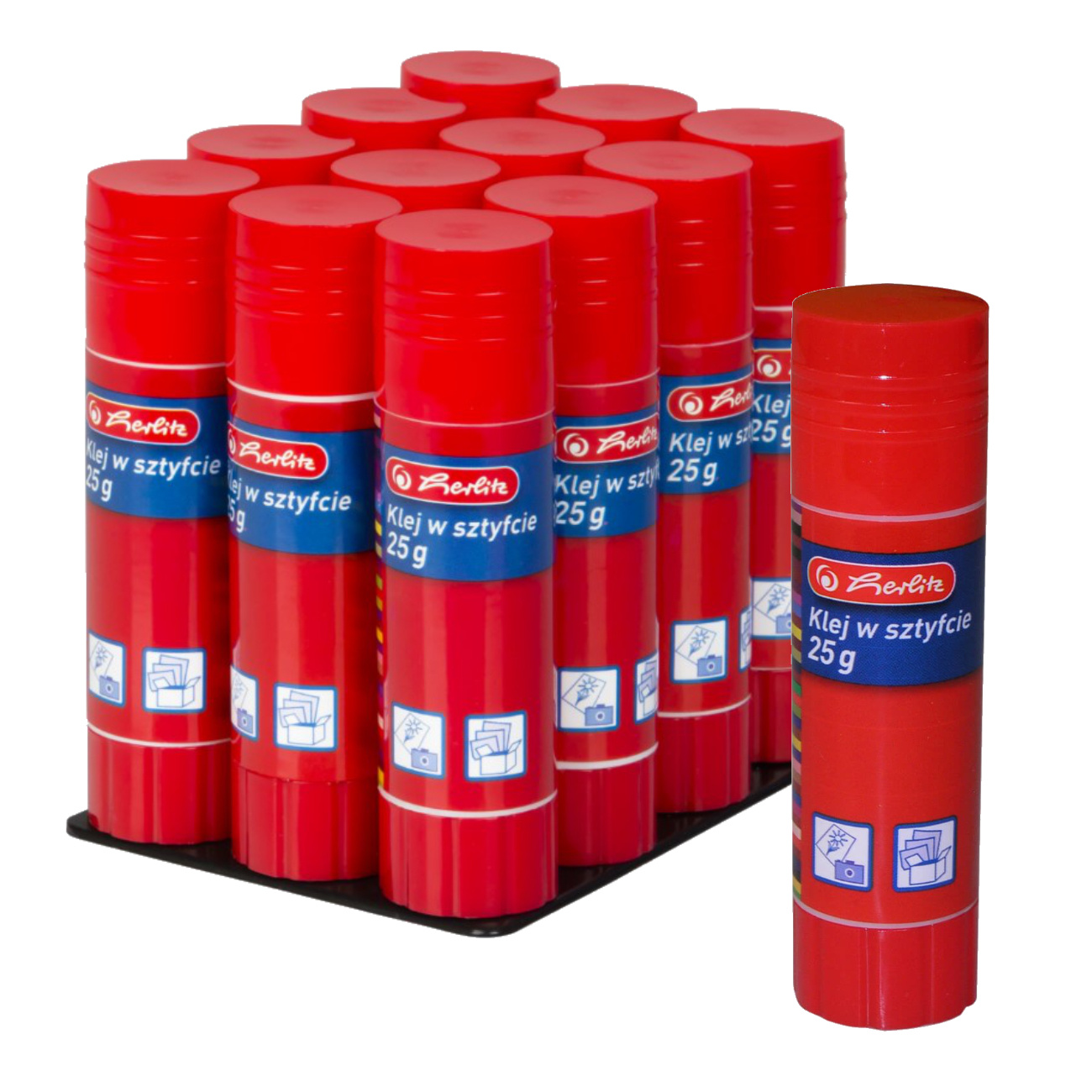 Klej w sztyfcie 25g szkolny biurowy mocny transparent zmywal HERLITZ 12szt
