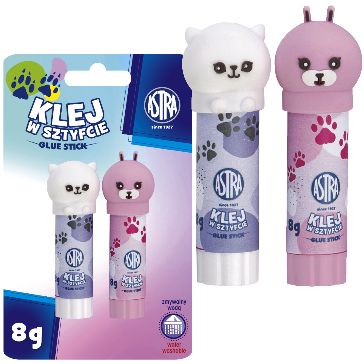- Nakładki korpusów klejów przedstawiają urocze zwierzątka