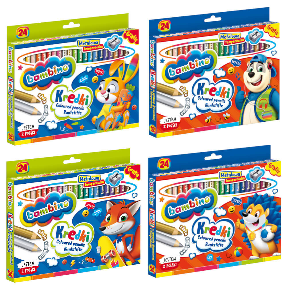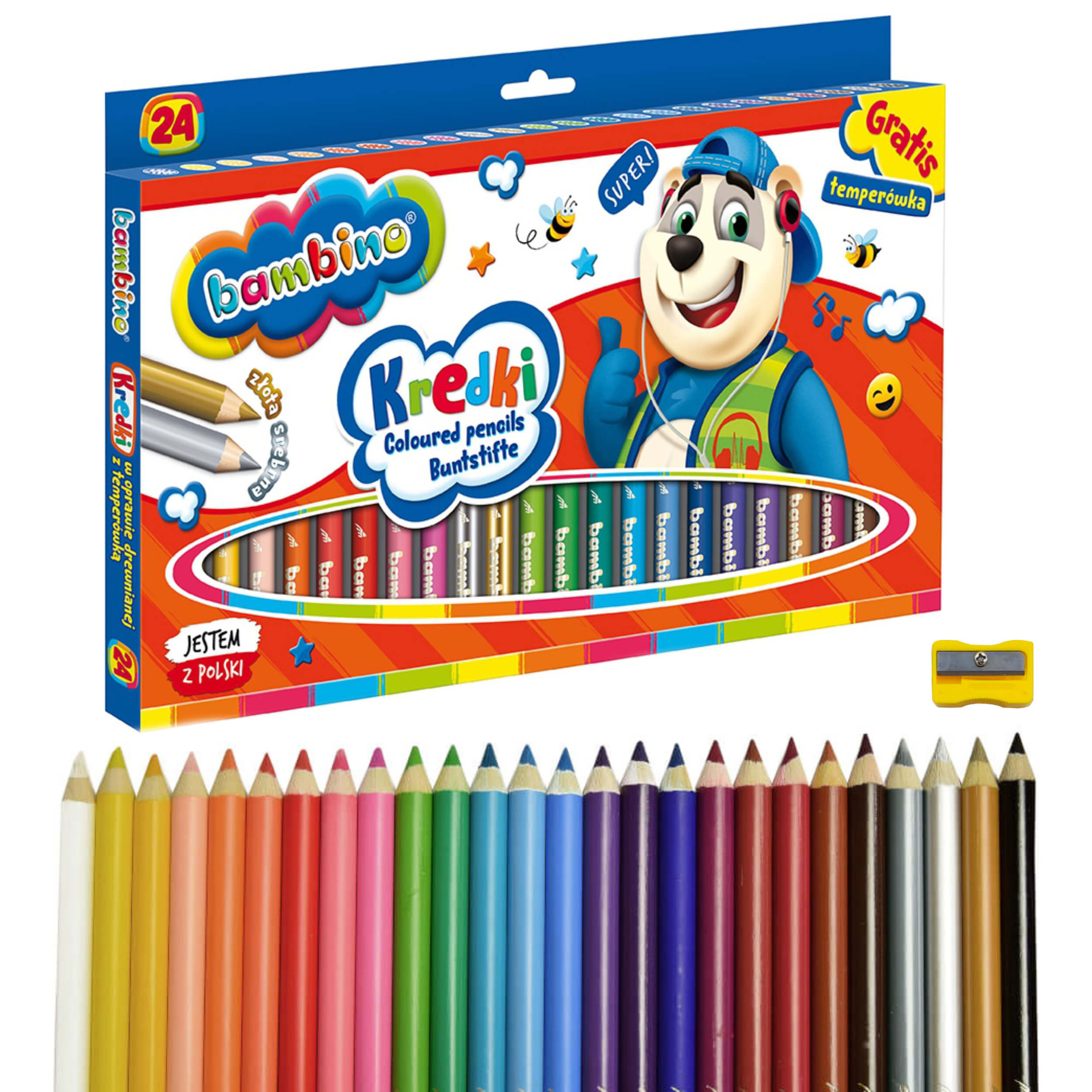 Kredki Bambino 24 kolory z temperówką to idealny zestaw dla dzieci, które kochają rysować i tworzyć kolorowe prace. Miękkość, intensywność barw i solidne wykonanie sprawiają, że to niezastąpiony element każdej szkolnej wyprawki!