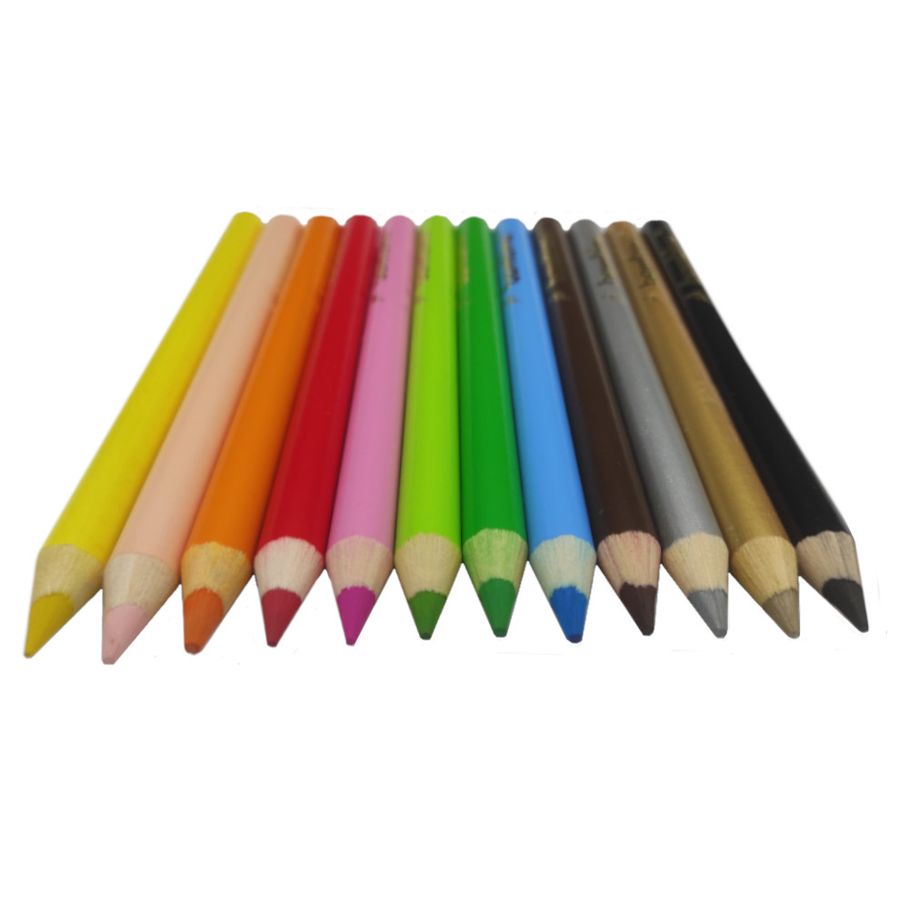 🌈 12 intensywnych kolorów – w zestawie również kredka złota i srebrna