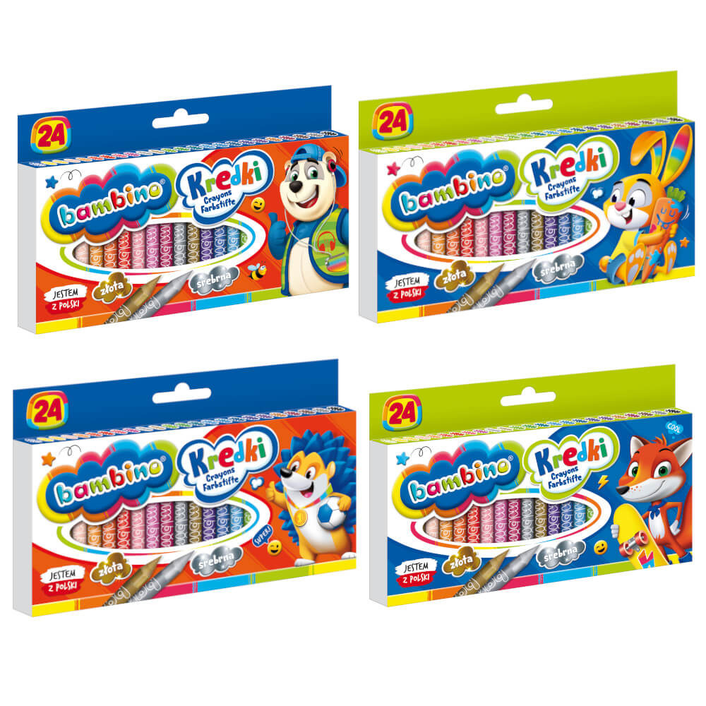 Kredki Bambino 24 kolory to niezastąpiony zestaw dla małych artystów – bogata paleta barw, doskonałe krycie i niezrównana jakość, która inspiruje do tworzenia każdego dnia!