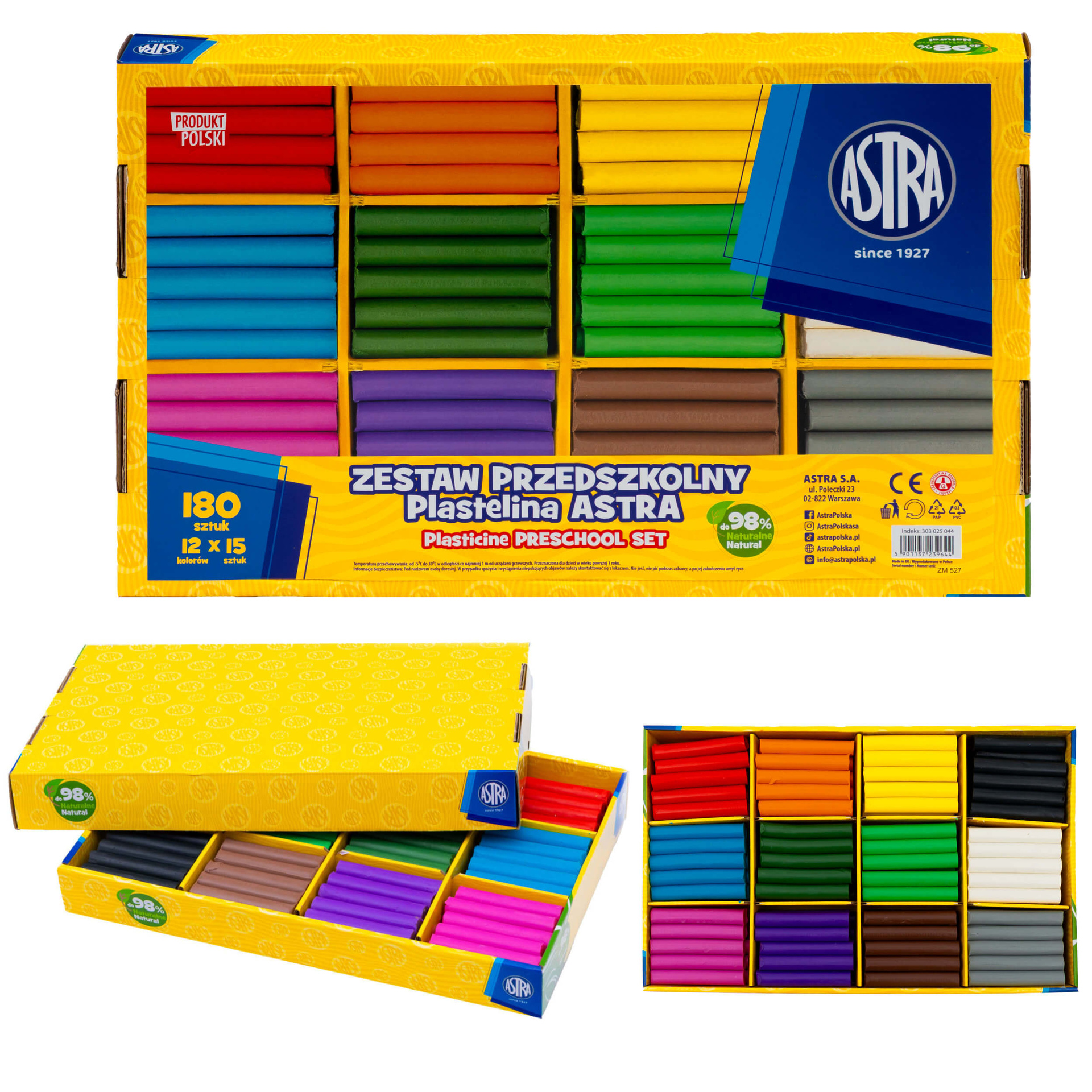 🎨 Zestaw przedszkolny Plastelina ASTRA – 12 kolorów × 15 sztuk
