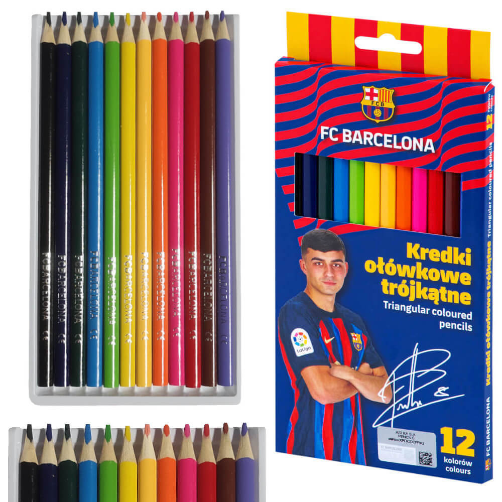 ✏️ Kredki ołówkowe FC Barcelona– 12 kolorów, długość kredki: 17,5 cm