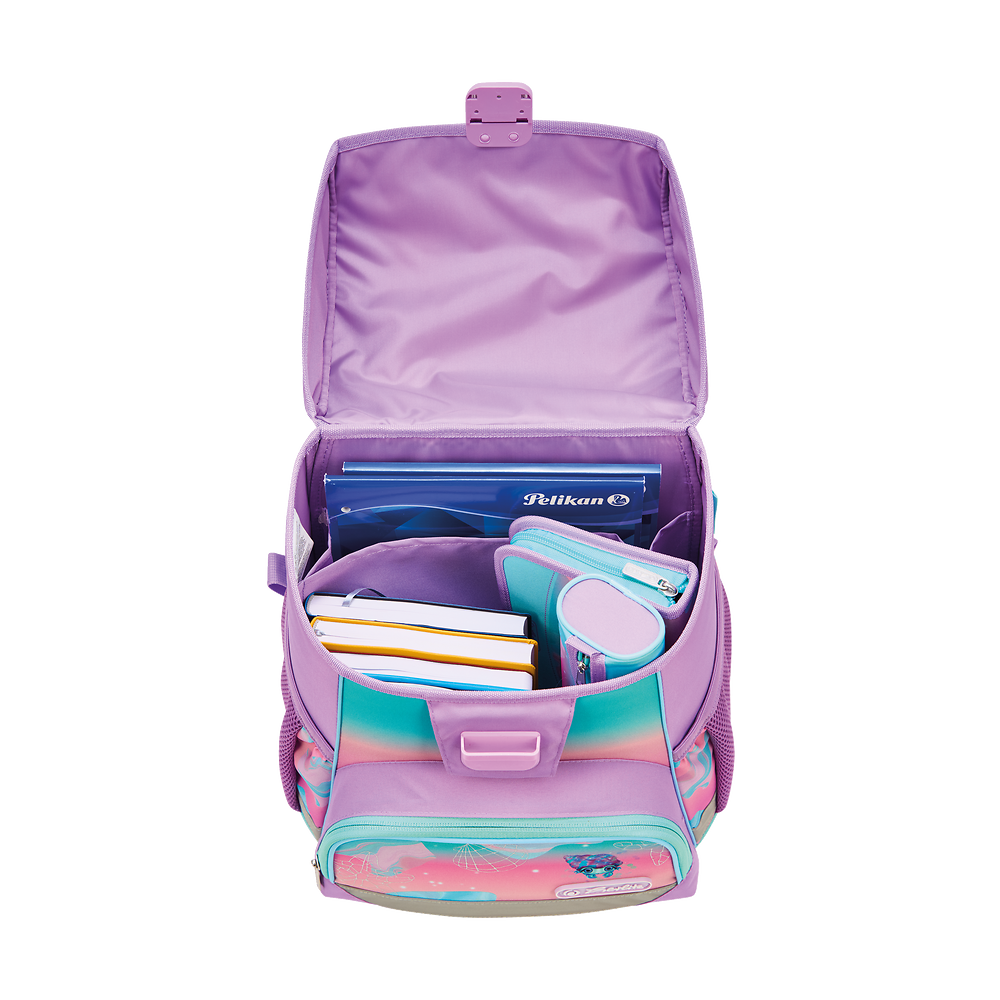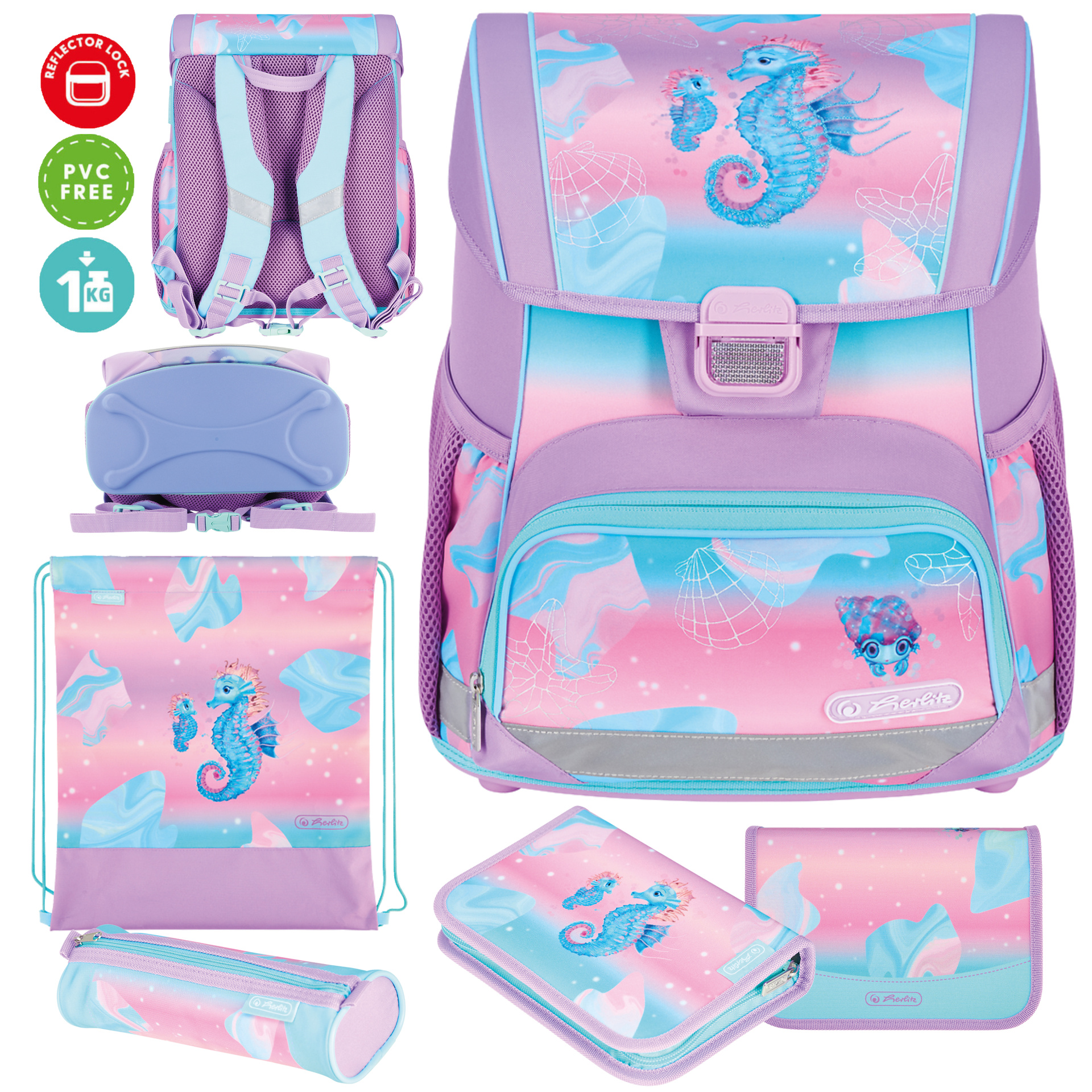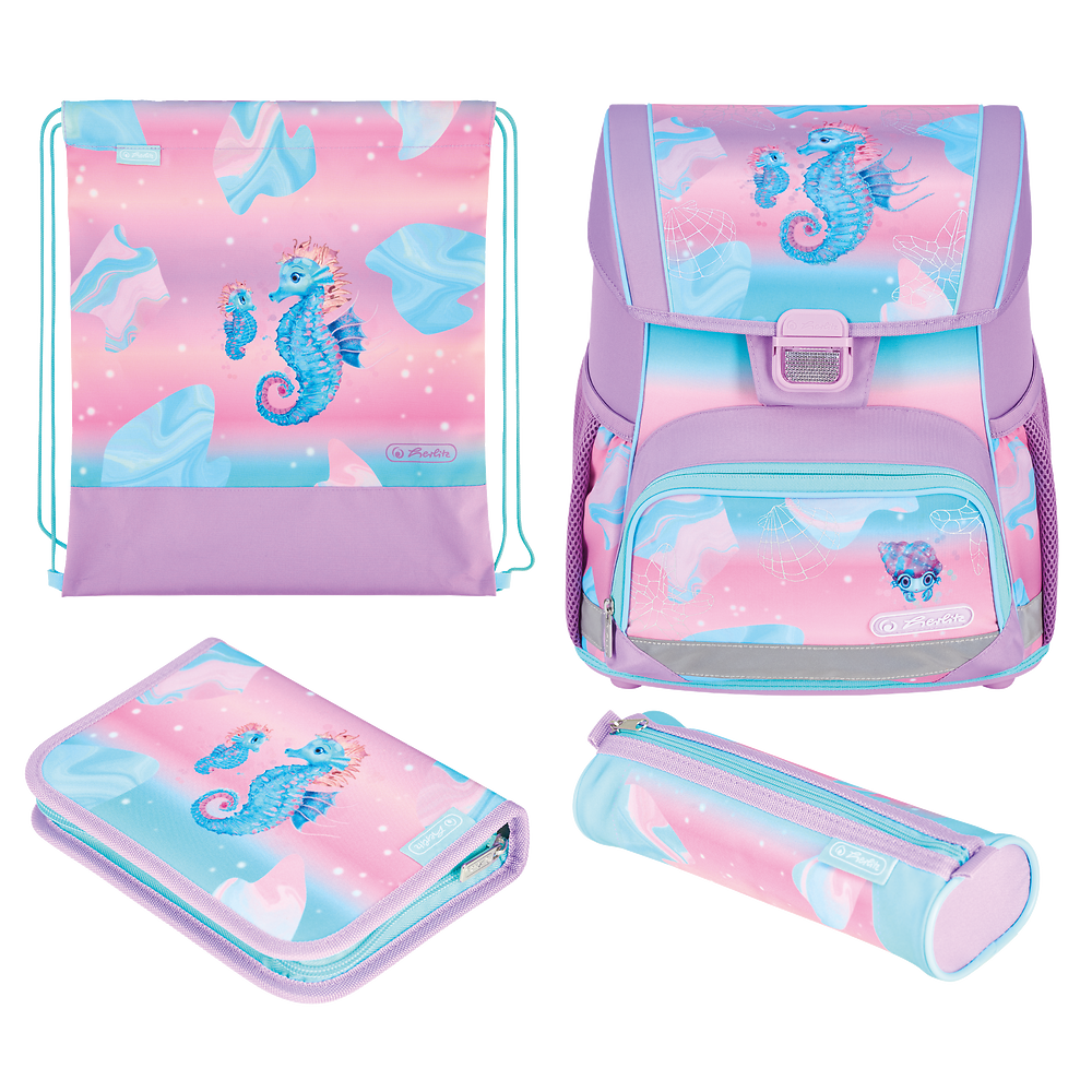 Zestaw Herlitz Loop Plus Ocean Lights to idealny wybór dla uczniów klas 1–3, którzy kochają bajkowy świat podwodnych przygód. Motyw koników morskich w pastelowych kolorach przyciąga wzrok, a lekki tornister i praktyczne dodatki zapewniają komfort i porządek każdego dnia w szkole