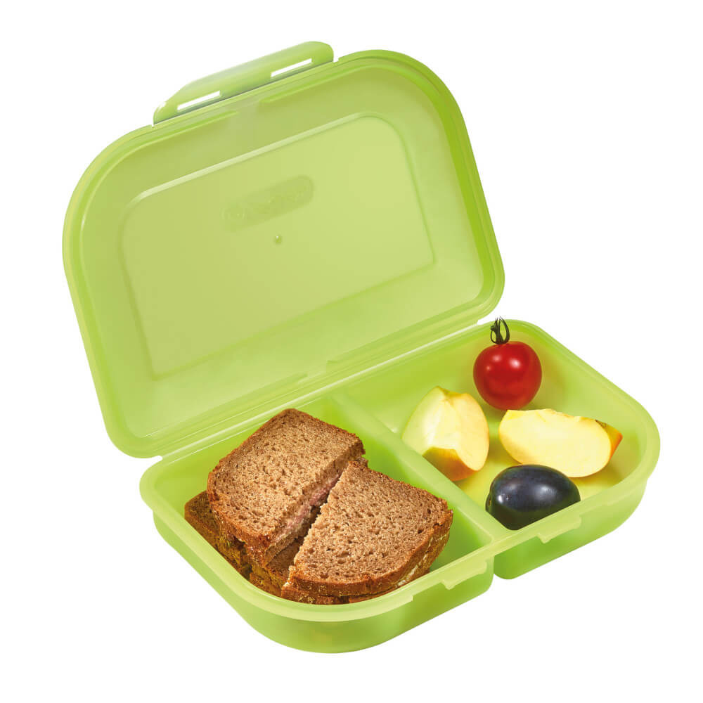 - Praktyczne zamknięcie oraz dwie komory ułatwiają pakowanie śniadania