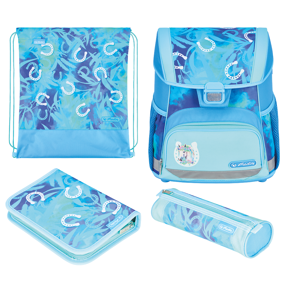 Ten uroczy zestaw szkolny z plecakiem Herlitz Loop w wzorze Lucky Horse to doskonały wybór dla małych miłośników koni. Motyw podków i konika zachwyca dzieci, a ergonomiczny tornister, piórnik, tuba i worek zapewniają komfort, funkcjonalność i gotowość na każdy szkolny dzień.