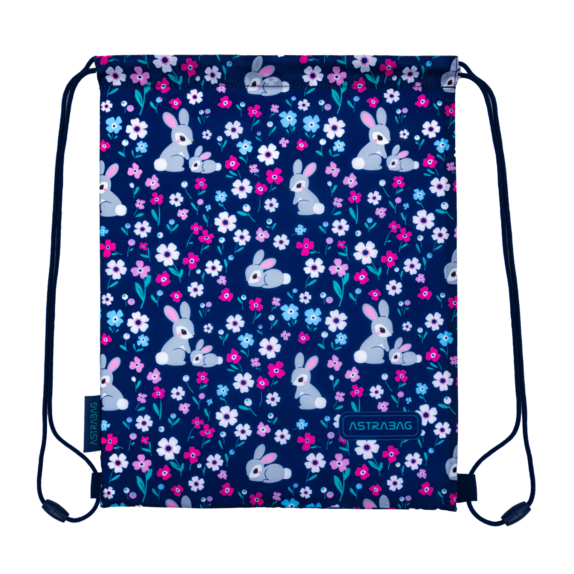 Worek szkolny Astra z motywem króliczków i kwiatów to idealne rozwiązanie na obuwie zmienne lub strój na WF. Lekki, pojemny i wytrzymały – sprawdzi się zarówno w szkole, jak i podczas zajęć dodatkowych. Ściągacze pełnią funkcję szelek, dzięki czemu worek można wygodnie nosić jak plecak.