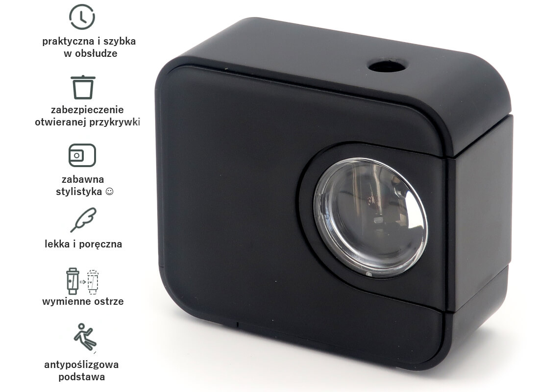 - Tryb pracy: ostrzenie elektryczne (temperówka zasilana bateriami).